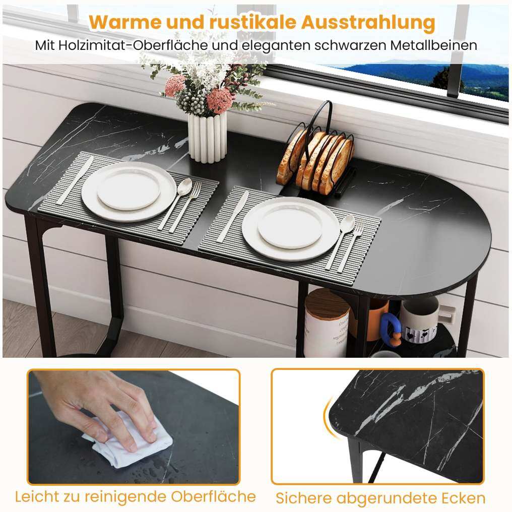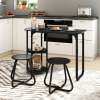 3-Piece Industrial Dining Room Set: This dining table set includes a rectangular table and two stools – ideal for couples or small families. The table also features practical two-tiered shelves on both sides, providing extra space for snacks, books, dishes, wine, spices, or coffee cups, helping to keep your dining area tidy.