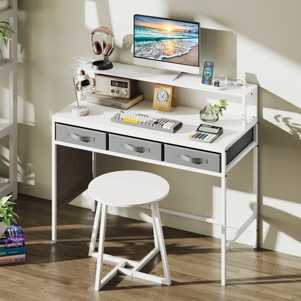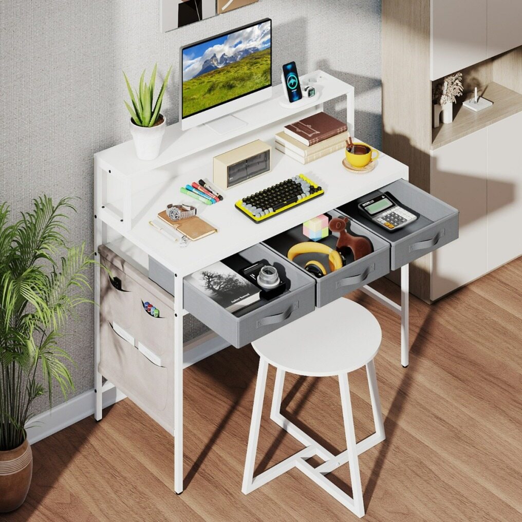 Ample Storage Space: The desk features a large work surface, a display shelf for decorative items or books, 3 pull-out fabric drawers and handy fabric side pockets to keep everything within reach.