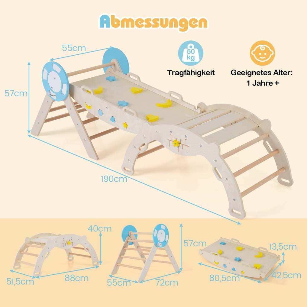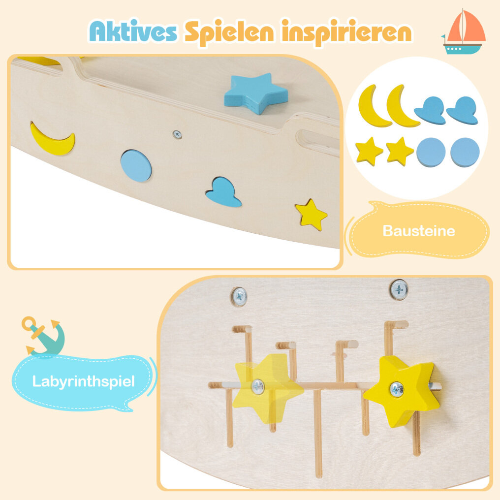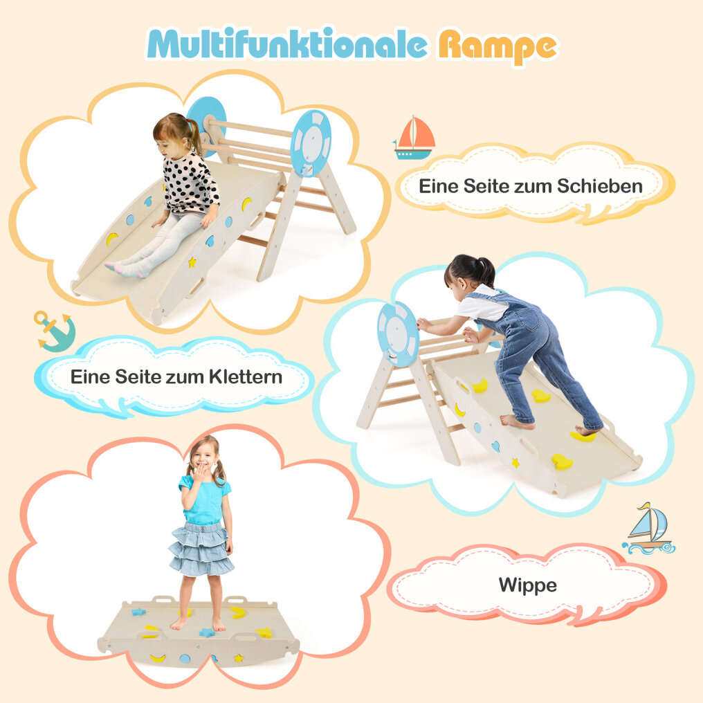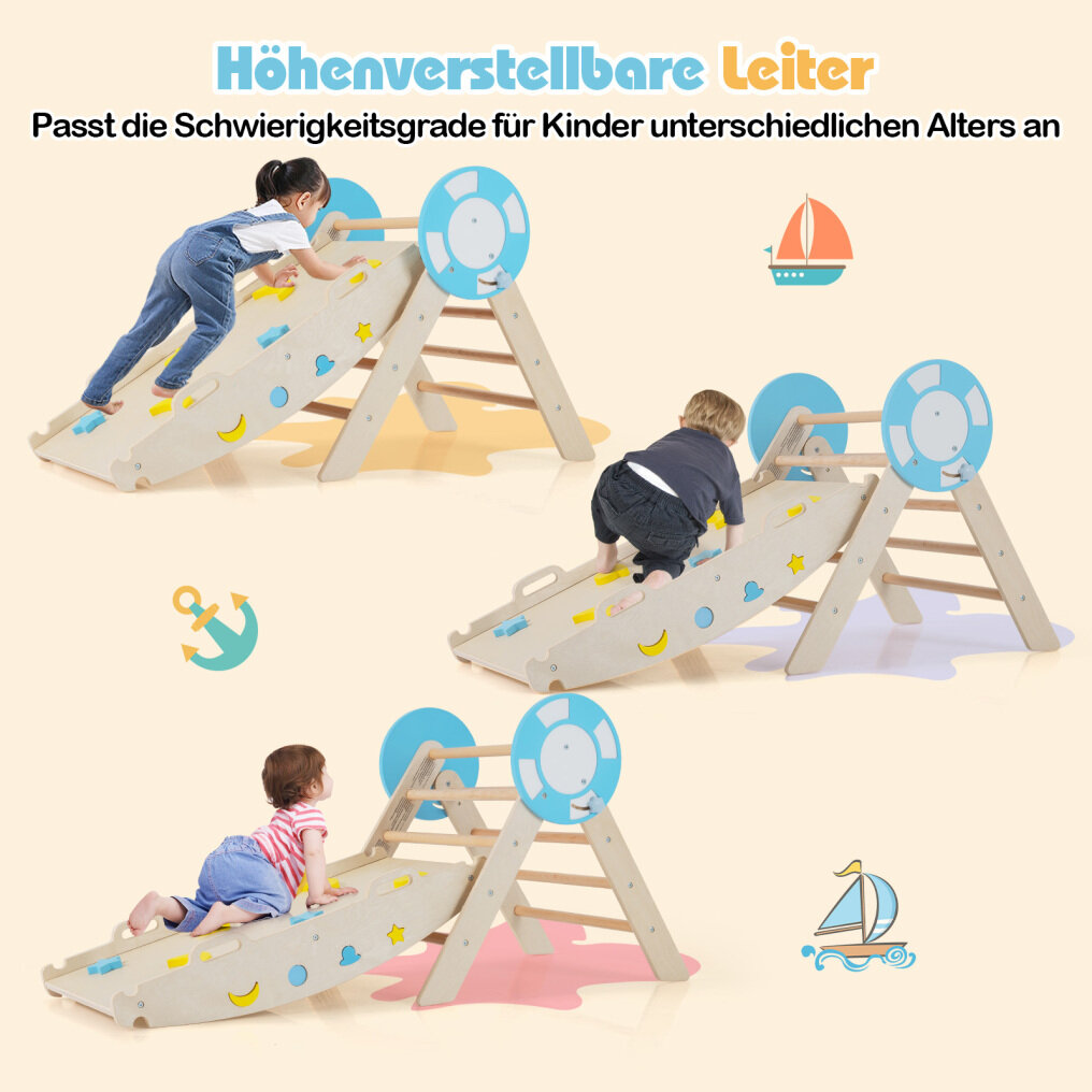 Playful features: This nautically inspired climbing triangle set comes with a maze game and building blocks to stimulate creativity and learning. The height-adjustable ladder also offers a suitable challenge for different age groups.