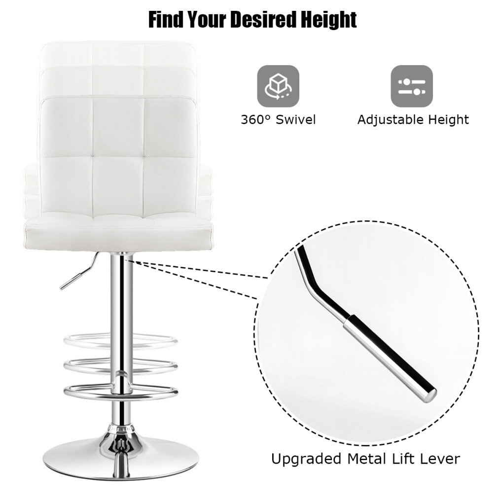 Height Adjustable Swivel Barstool with PU leather for home-White
