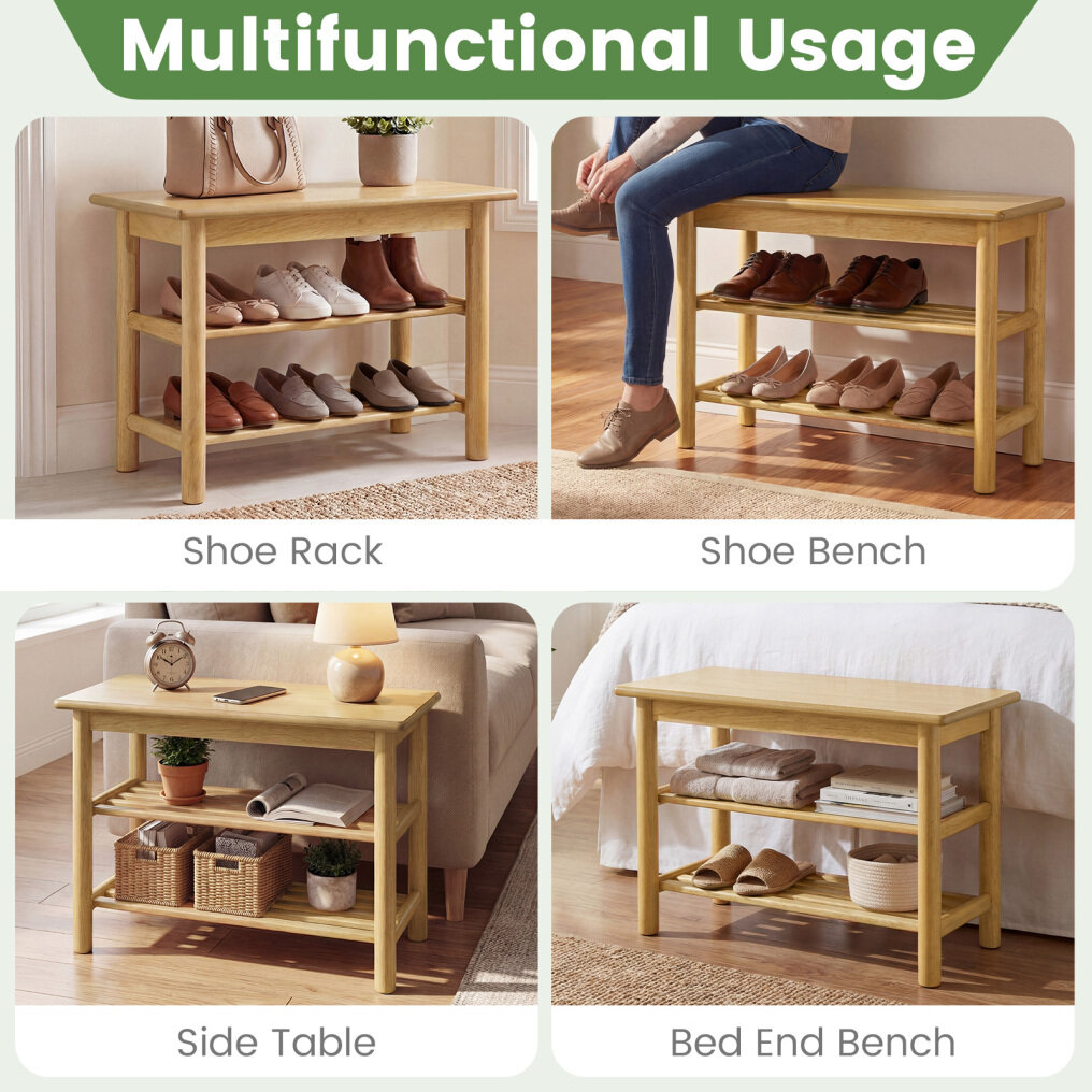 ● Multi-Tier Organization: Featuring a 24" x 12" spacious bench top and a 2-tier slatted shelf beneath, this 3-tier shoe bench provides ample storage for shoes, bags, blankets, scarves, umbrellas, and more, helping keep your room organized.