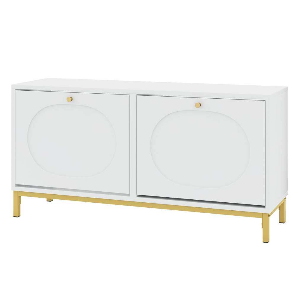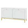 ● Modern and Space-Saving Design: Combining a sleek white finish, golden metal knobs and legs, this modern shoe cabinet brings style and sophistication to any home. Measuring 39.5" x 12" x 20", it fits perfectly in small hallways, entryways, living rooms, or bedrooms.