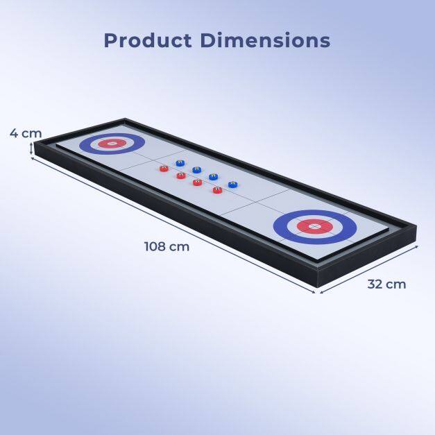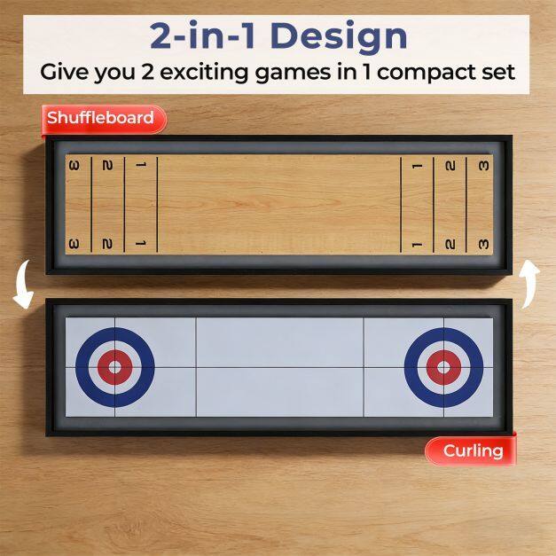 ● Multi-Game Fun for Various Ages: Designed to entertain both adults and kids, this unique combo set features a dual-sided game board with shuffleboard on one side and curling on the other, providing hours of fun for family gatherings, game nights, and casual play sessions.