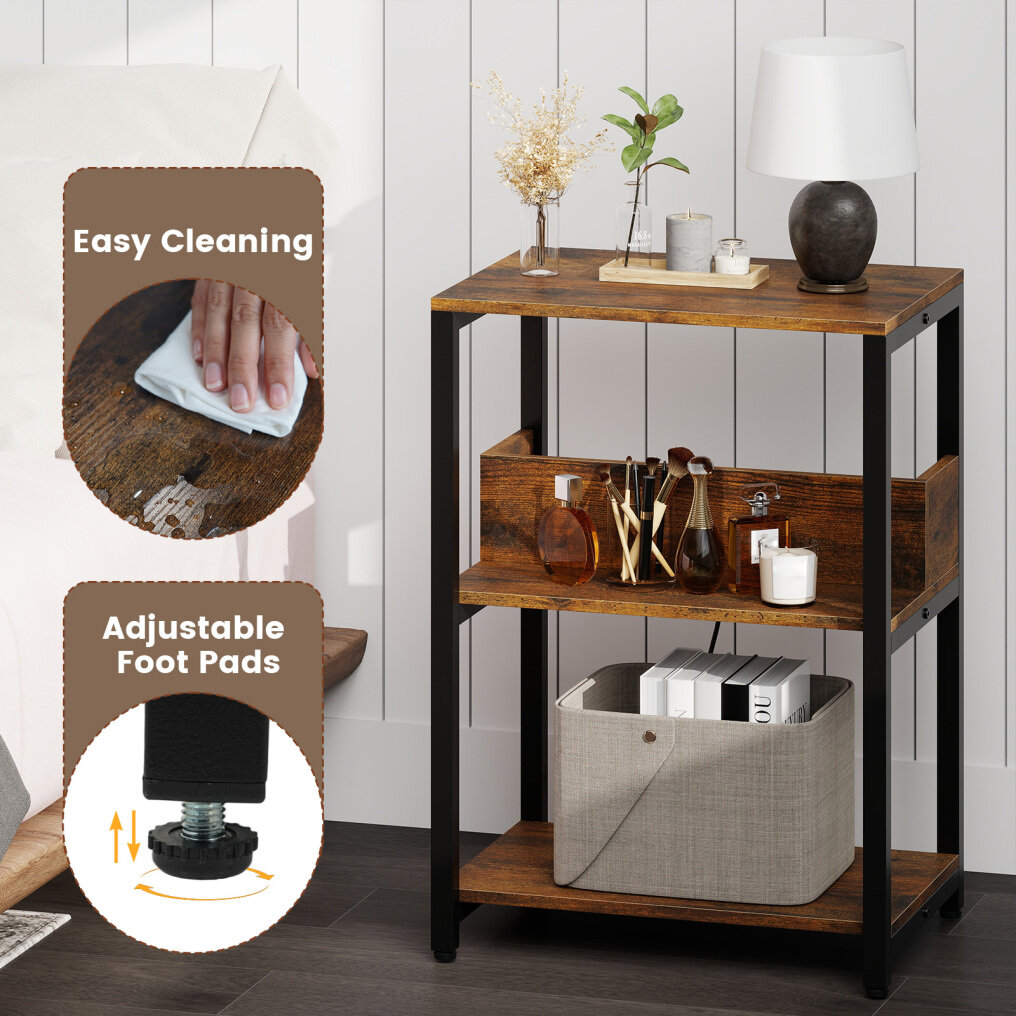 ● 3-Tier Open Storage: This nightstand provides ample storage with 3 open tiers: a wide top, a middle compartment and a bottom shelf, able to keep your cups, books, potted plants and storage boxes clutter-free and within easy reach.