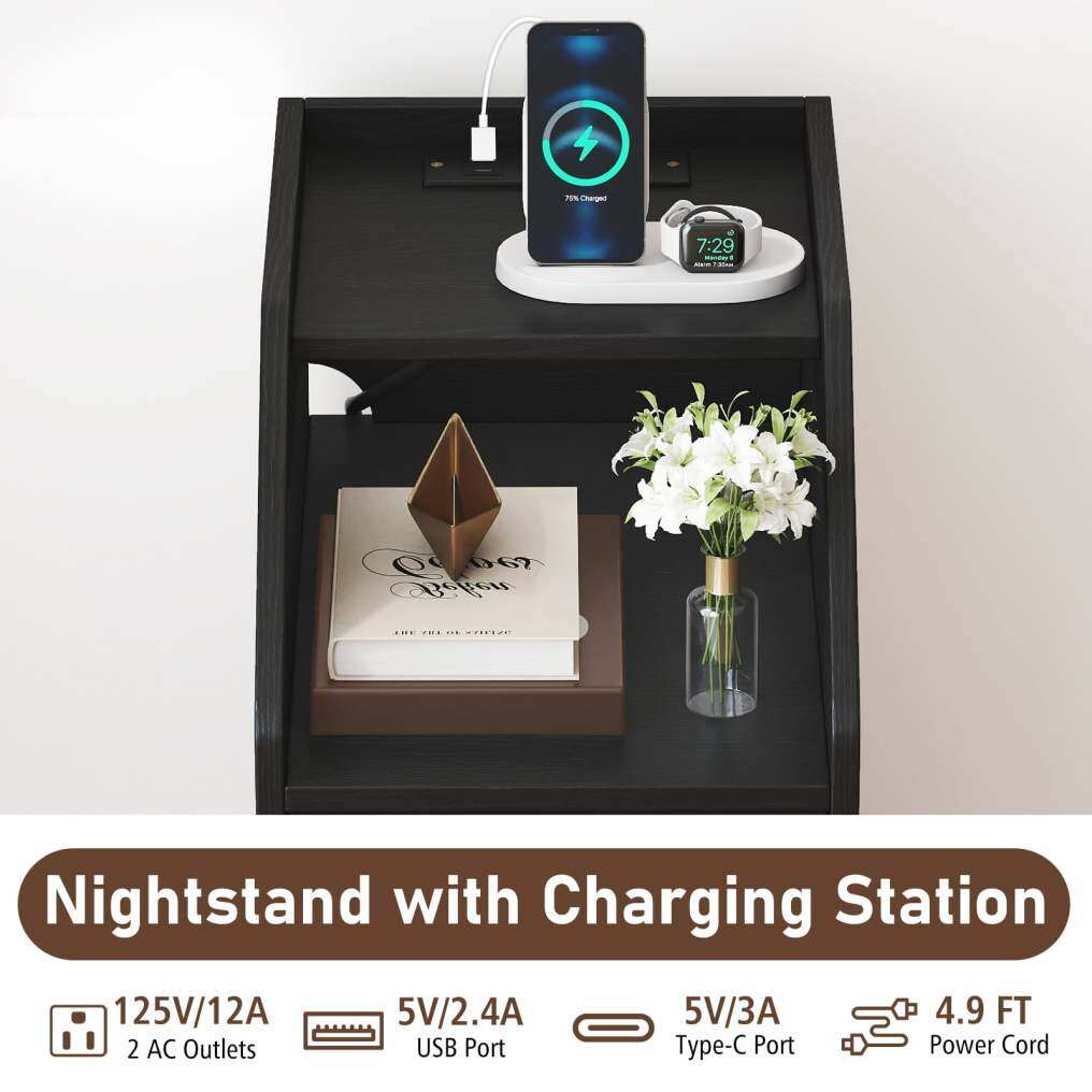 ● Integrated Charging Station: Enjoy the convenience of built-in charging, featuring 2 AC outlets, a USB port, and a type-C port to power your devices at your fingertips. The side table includes a 4.9 ft long power cord for easy access to wall outlets.