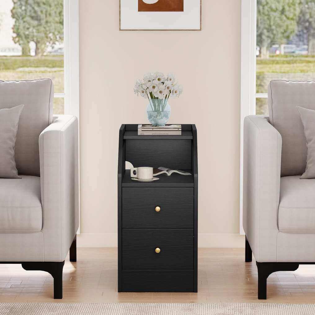 ● Perfect Storage System: Designed for organization, this end table boasts a wide top surface, a spacious open compartment, and 2 easy-glide drawers. The smart cable hole at the back helps you keep cords neatly managed and hidden.