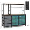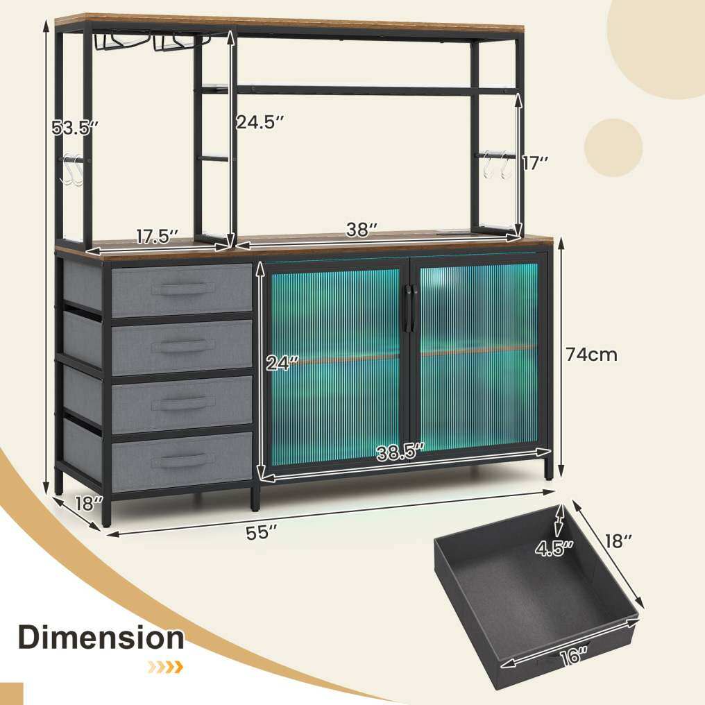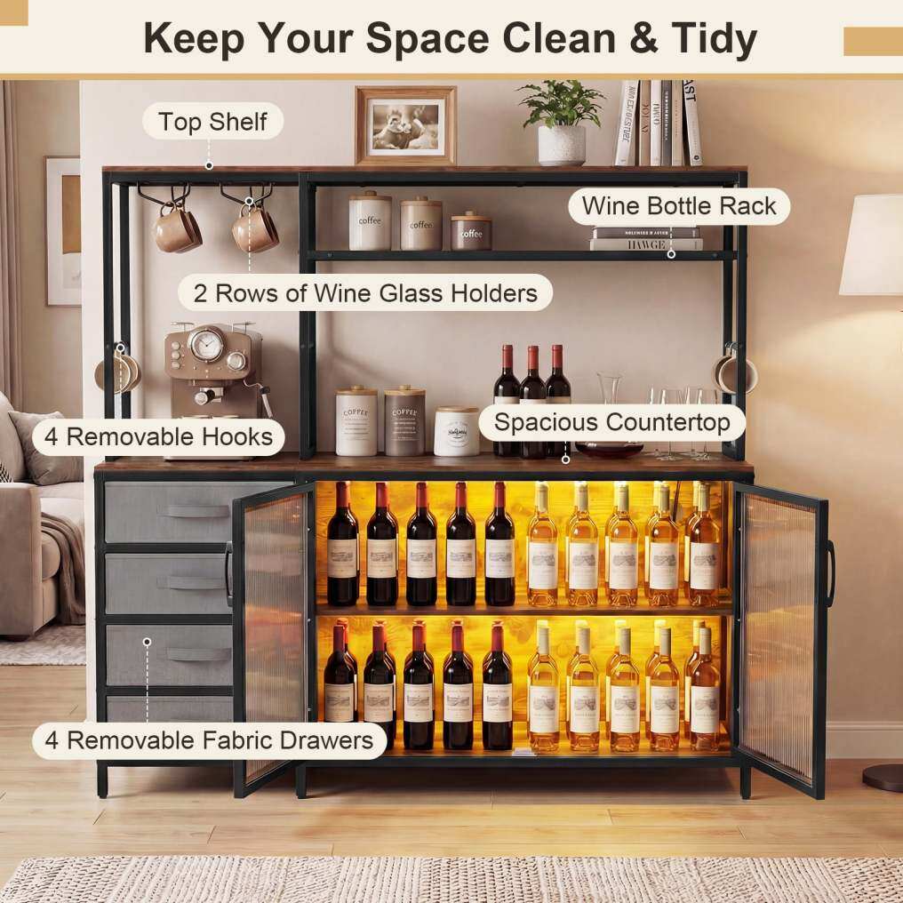 Keep Your Space Clean & Tidy: This sideboard cabinet features a top shelf, spacious countertop, 2 rows of wine glass holders for up to 6 glasses, and a wine bottle rack offering easy access to 7 bottles. The dual-door cabinet, 4 removable hooks and 4 removable fabric drawers accommodate buffet spreads, cocktail accessories, and all your bar essentials.