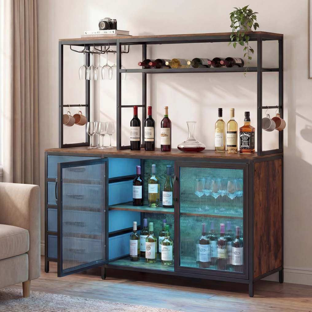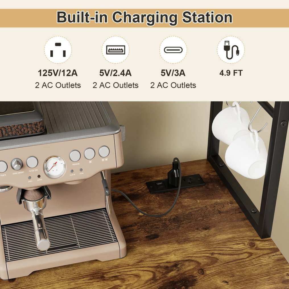 Integrated Power Outlets: The built-in charging station is equipped with 2 AC outlets, 1 USB port, and 1 Type-C port, which keeps your devices powered and ready during entertaining. Mix drinks while charging your phone or tablet, making this wine bar cabinet an all-in-one solution for the modern home.