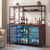 Sideboard Buffet Cabinet with LED Lights 55 inch Coffee Table with Power Outlets-Rustic Brown