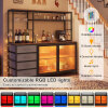 Customizable RGB LED Lights: The integrated LED lights feature 16 static colors, and 4 dynamic modes, which can transform your wine bar cabinet into a vibrant showpiece for any occasion. The included remote makes it simple to adjust the lighting color, brightness, speed, and mode.