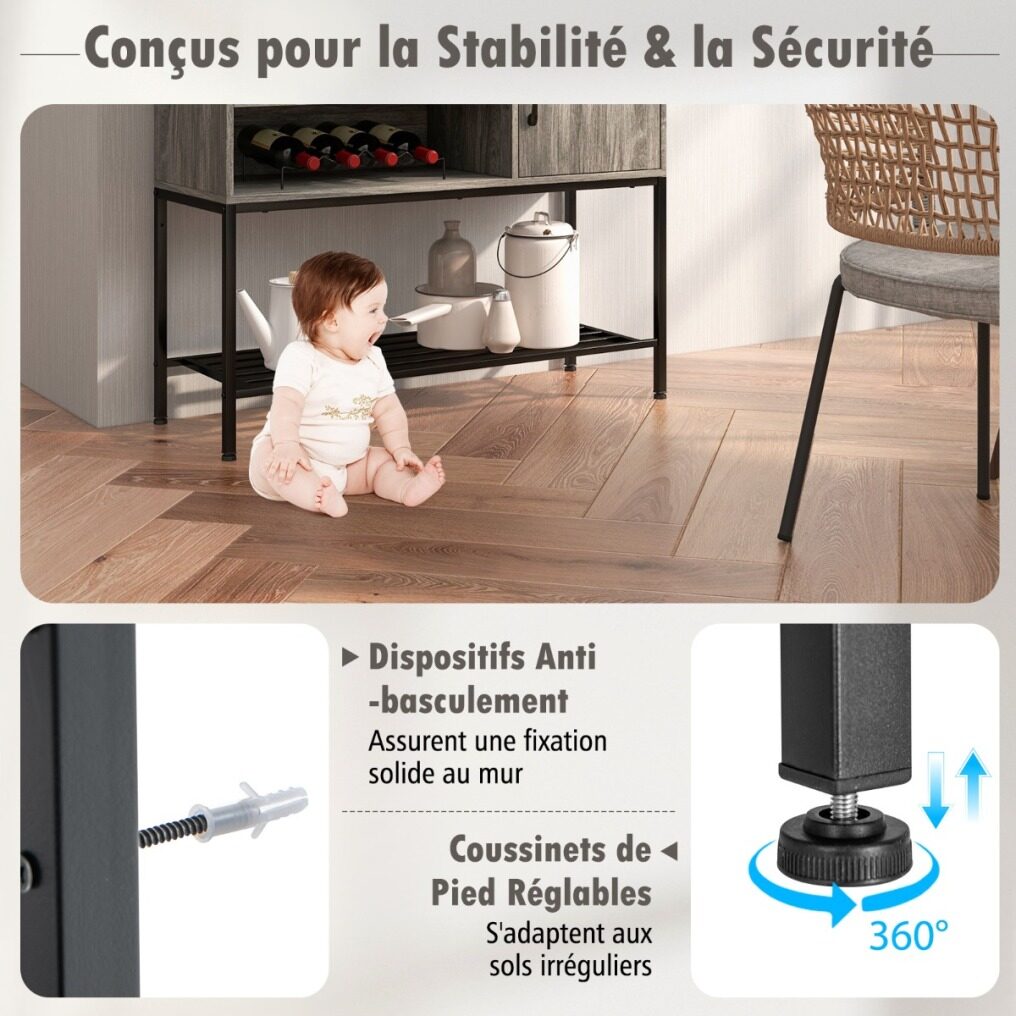 This versatile console table offers ample storage space for keeping essentials within easy reach, featuring removable wine racks for specified storage needs. The user-friendly handle allows for effortless opening of the door, while the magnetic door catch ensures secure closure. With a sturdy metal frame and adjustable foot pads, this sideboard provides stability and reliable support. For added safety, anti-toppling devices are included. Whether placed in the kitchen, dining room, living room, or entryway, this buffet sideboard table is a fantastic addition to your home. If you are looking for such a product, do not hesitate to buy it!