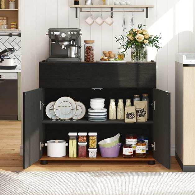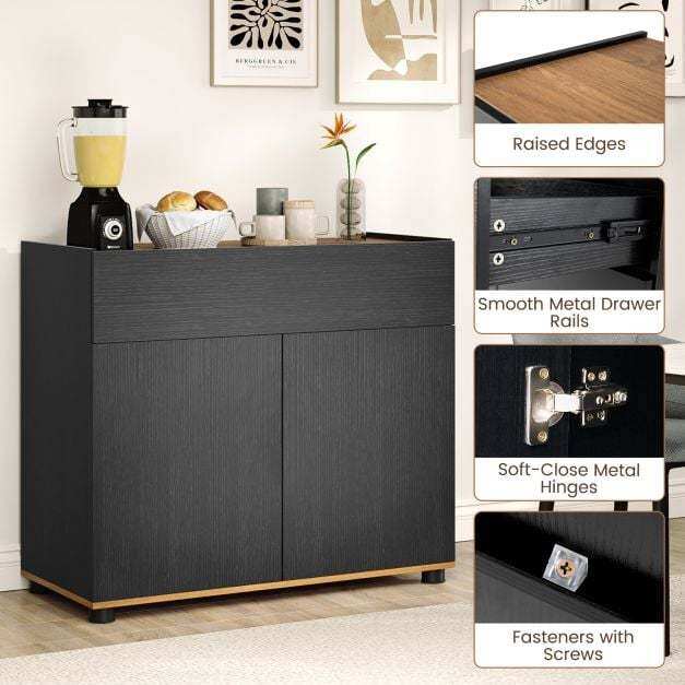 Organized storage solution: With a top, a drawer, and a two-door compartment, this buffet cabinet offers versatile storage options. It keeps your items neatly organized and within easy reach, from dishes to kitchen utensils and more.