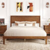 Featuring retro walnut headboard, this bed frame seamlessly blends with various bedroom interiors while ensuring cozy back support. Crafted from high-quality acacia wood, known for its durability and pleasing grain texture, the bed frame boasts sturdy support and long-lasting use. It incorporates strong plywood slat system and middle support legs which evenly distribute weight. Besides, the ample under-bed storage space makes it easy to store items and clean the room. All in all, the platform bed exudes charm and character, adding a touch of nostalgia to any room.