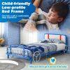 Child-friendly Low-profile Bed Frame: The kids bed frame features an adorable car-themed decoration, which will attract kids and win their hearts. They will love to possess their own-sized furniture. More importantly, the 18cm height from bed to floor allows your kids to get in and out of bed easily, which gives them the courage to take their first steps of independence.