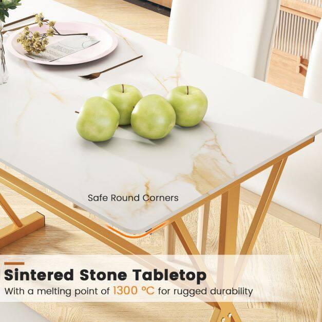 Modern Yet Timeless Aesthetic: The table features a sophisticated blend of a sleek sintered stone surface with an elegant golden metal frame, adding a touch of luxury to any space. Additionally, with its simple structure and clear illustrations in the user’s manual, it is easy to set up.