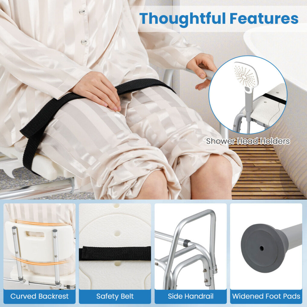 Enter & Exit the Tub with Confidence: This sliding tub transfer bench makes it easier and safer to get in and out of the tub for seniors, the disabled, pregnant women, and those postsurgery people. The side handrail and safety belt offer enhanced safety during tub entry and exit.