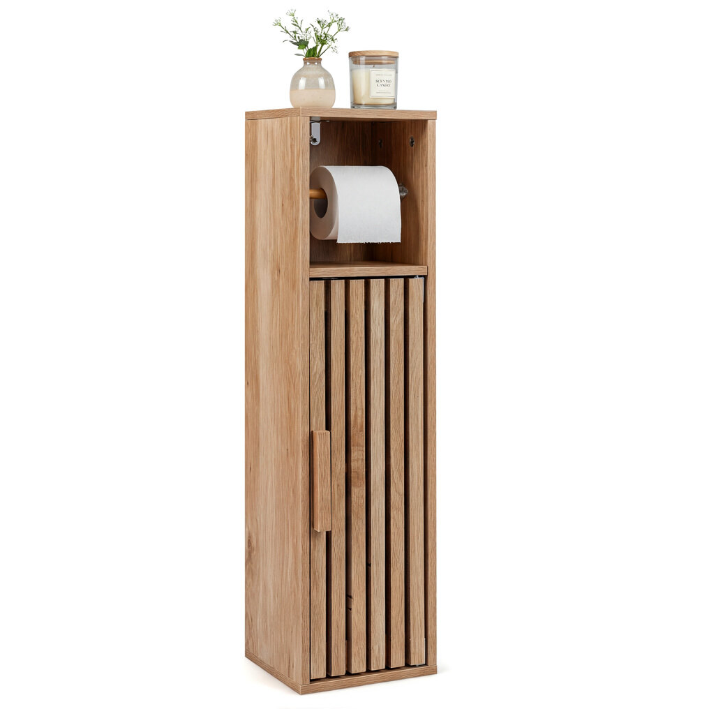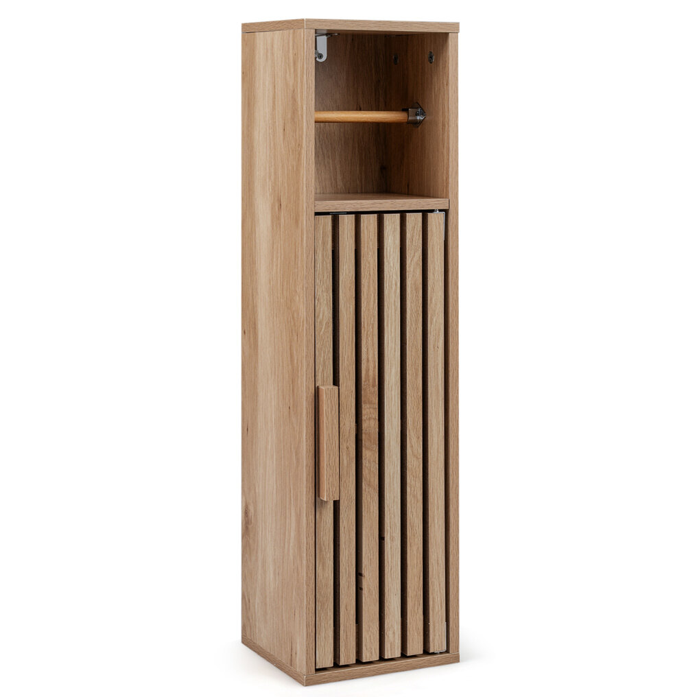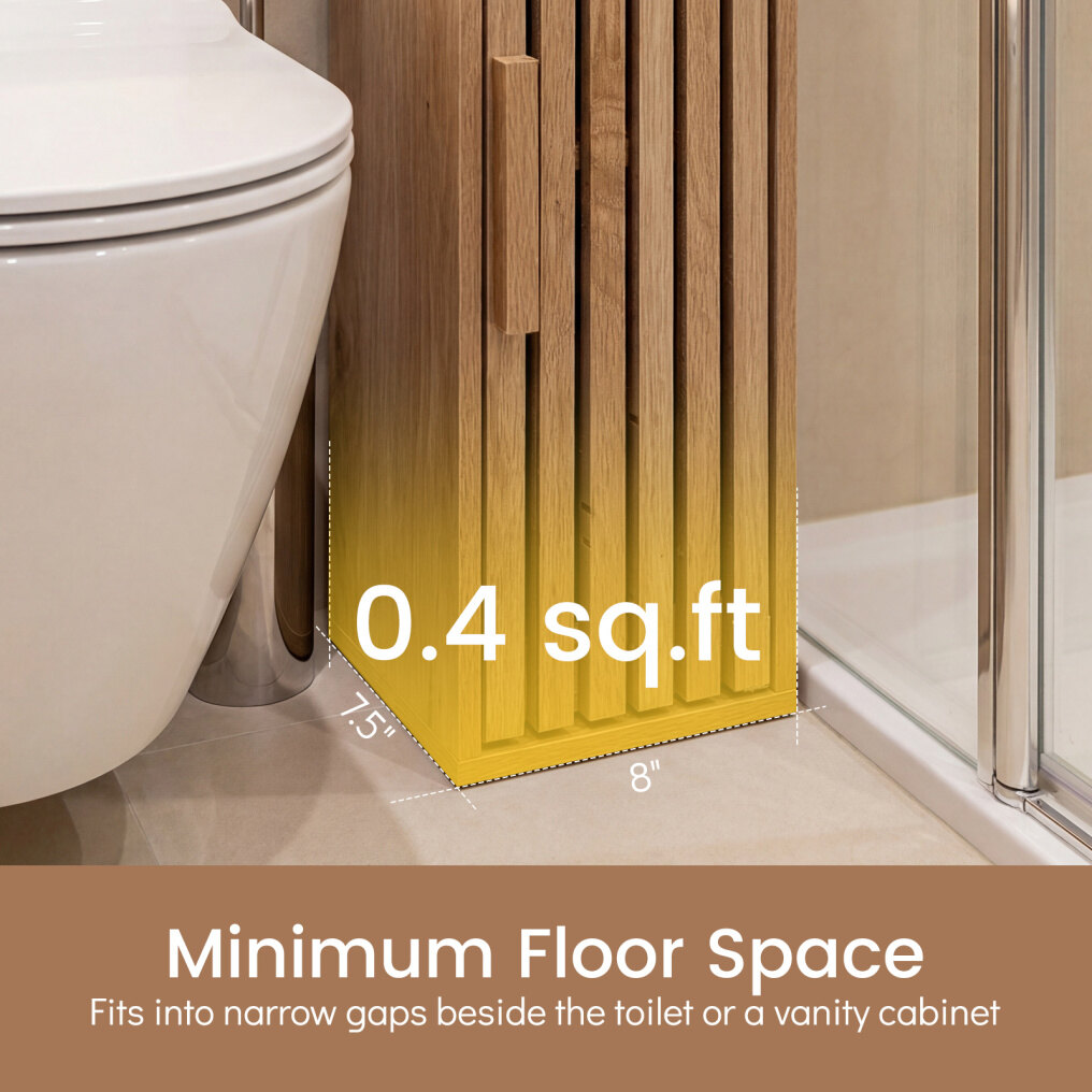 ● Fresh-Looking Design: Featuring a slat-door design, this slim bathroom cabinet promotes airflow to keep items fresher. Its natural tones add calm, spa-like warmth to bathrooms, laundry rooms, and living areas and blends easily with your existing style.