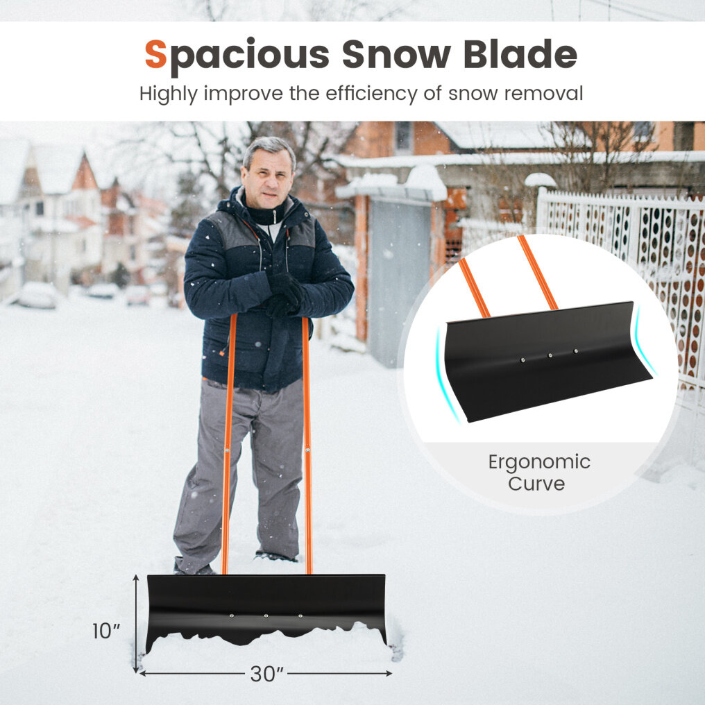 ● Spacious Snow Blade: Measuring 30" x 10" (L x W), the wide snow blade with ergonomic curve enables the snow shovel to remove more snow. Such a thoughtful design will highly improve the efficiency of snow removal.
