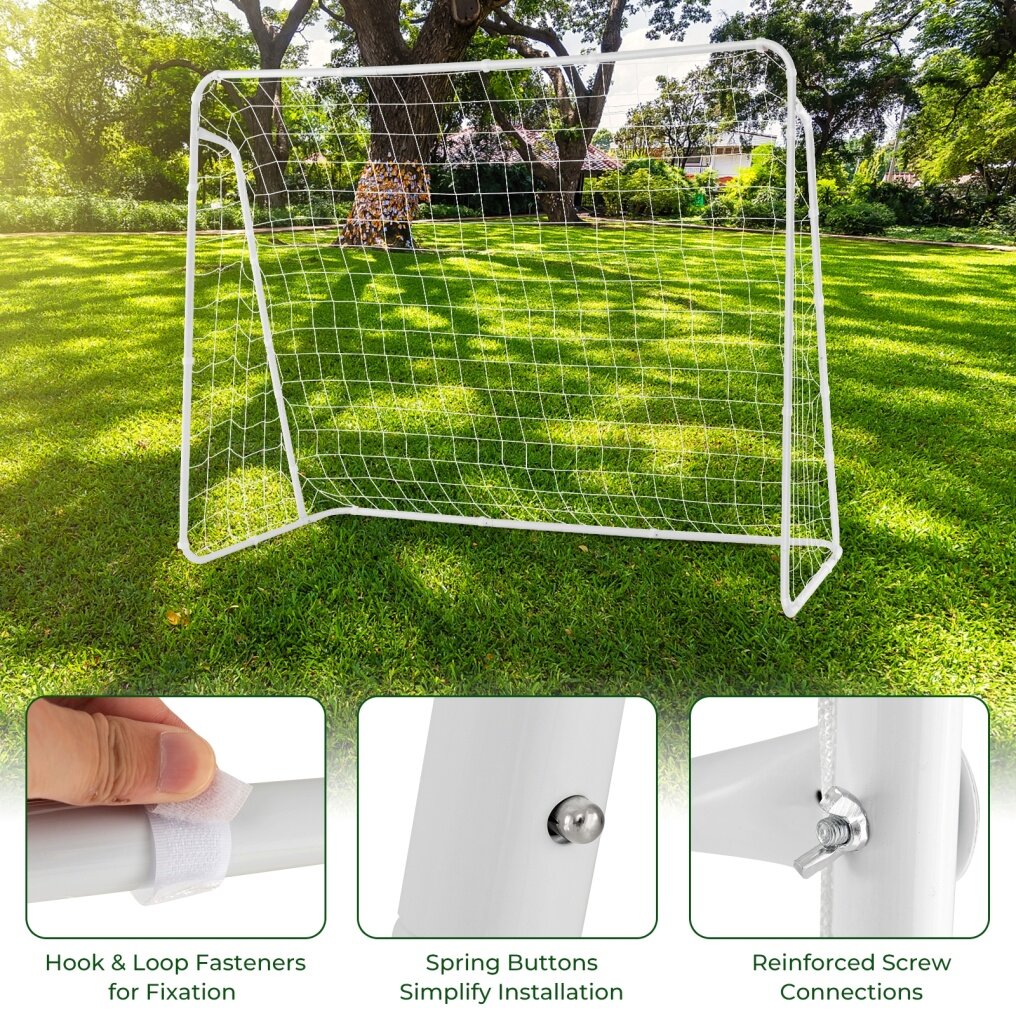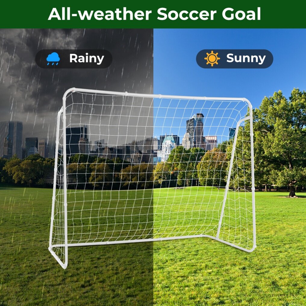 ● High-strength Material: The net is crafted with heavy-duty polyester mesh, which is resilient and durable enough to withstand a barrage of fierce shoots. Meanwhile, the premium material is waterproof to withstand outdoor conditions. And the soccer goal features metal posts to endure intense gameplay.