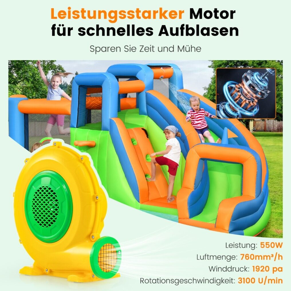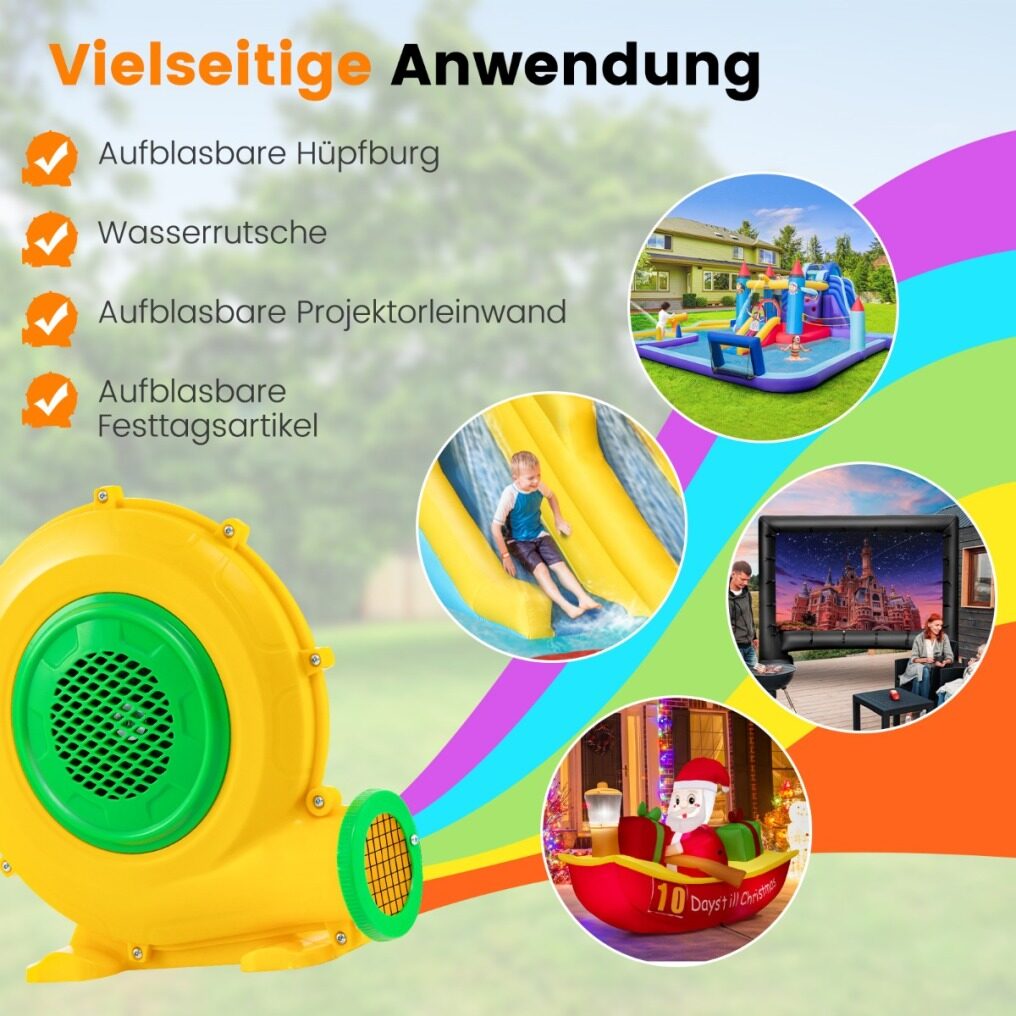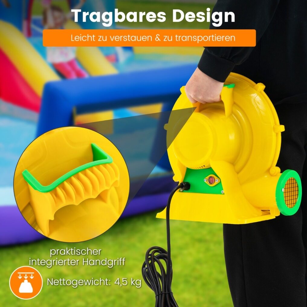 Powerful Operation: Experience the ultimate inflation efficiency with this air blower designed for multi-purpose use. It features a robust motor that quickly inflates your bouncy castle, water slide or obstacle course, ensuring minimal downtime and maximum fun.
