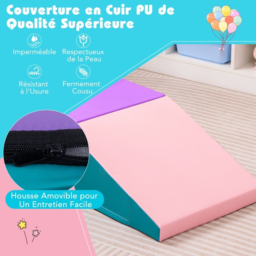 Made with high density EPE foam filling, this soft play set provides a cushioned and safe surface for play. The stair and slide climbing frames not only encourage physical activity but also improve gross motor skills and sensory development by aiding balance, coordination and strength. The PU cover is easy to clean and maintain for your child's playtime. The velcro fasteners create a strong connection between the foam blocks, allowing for various play configurations such as climbing, sliding and crawling.