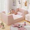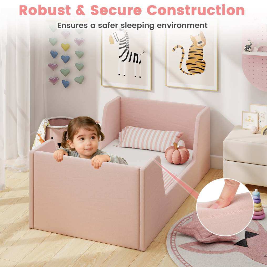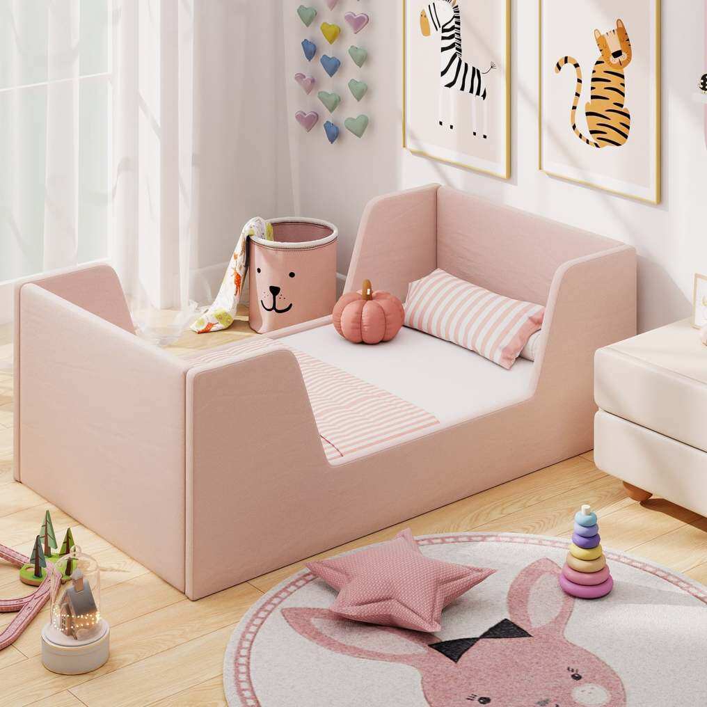 • Child-Friendly Upholstery: The entire bed is covered with plush velvet fabric and high-resilient foam for a cozy and inviting feel. This design ensures a safer sleeping environment for your child, helping them feel snug and avoiding bumps or scratches.