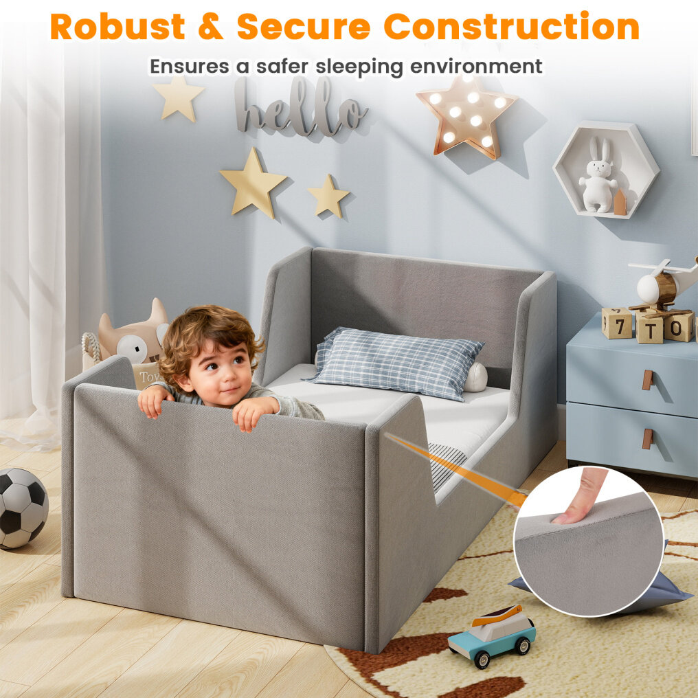 • Child-Friendly Upholstery: The entire bed is covered with plush velvet fabric and high-resilient foam for a cozy and inviting feel. This design ensures a safer sleeping environment for your child, helping them feel snug and avoiding bumps or scratches.