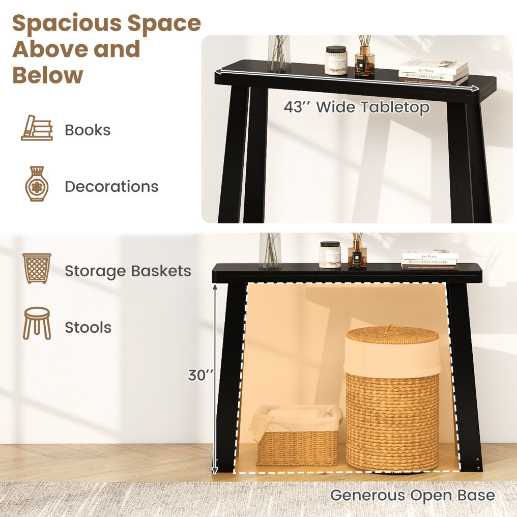 ● Space Saver for Small Areas: Measuring 43" x 12" x 32", this console table features a narrow profile ideal for maximizing space in compact entryways or narrow hallways. Its wide bottom area adds extra storage options, helping you keep essentials organized without overcrowding.