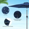 Made from high-quality polyester fabric, this market umbrella is sun-resistant and wear-resistant, providing long-lasting protection. The umbrella's ventilated design ensures improved air circulation and a cool, comfortable experience. Thanks to the innovative tilting mechanism, the 230 cm patio umbrella offers optimal shade and protects you from direct sunlight at any time of day. The crank and removable umbrella pole make setup and operation a breeze. So you can set up and enjoy your outdoor oasis in no time. The patio umbrella is durable and features a powder-coated metal pole and six sturdy ribs that ensure a stable structure. Spend less time fiddling with your umbrella and more time relaxing in the sun. After a long day of outdoor fun, you can safely store your folded parasol with the included strap.