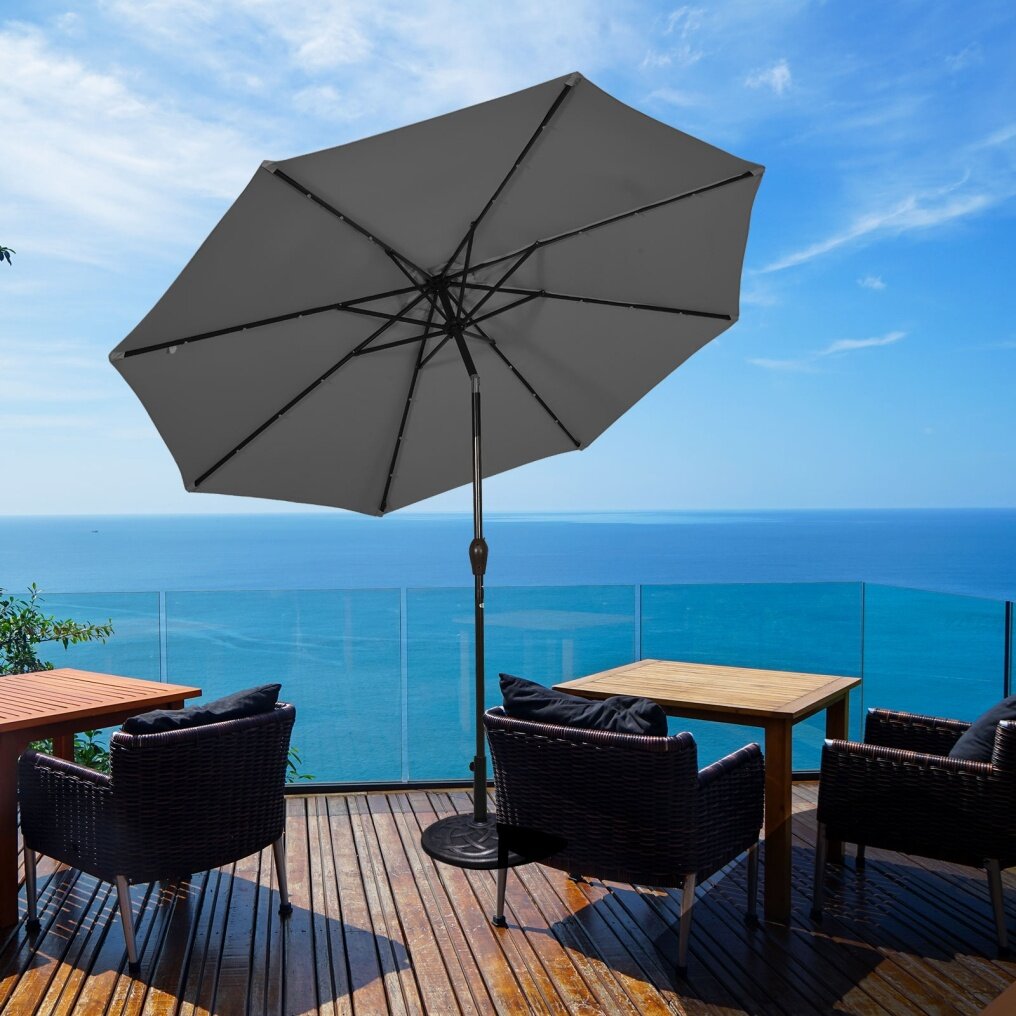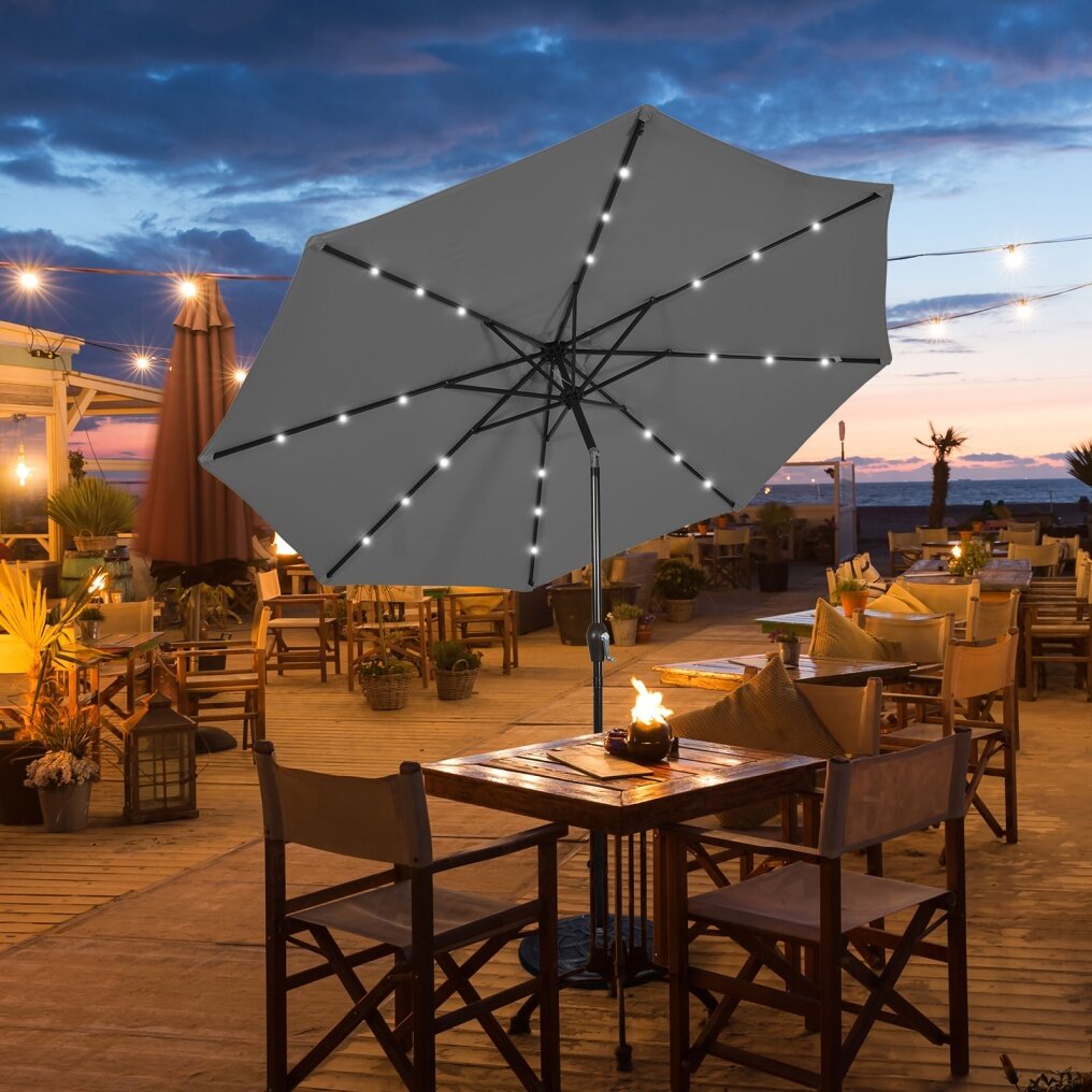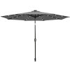 Energy-efficient Lighting: With a total of 24 built-in LED lights (3 on each rib), this outdoor umbrella can provide perfect lighting at night and create a warm atmosphere. More importantly, these lights are powered by solar panel on the canopy, saving energy in a green and efficient way.