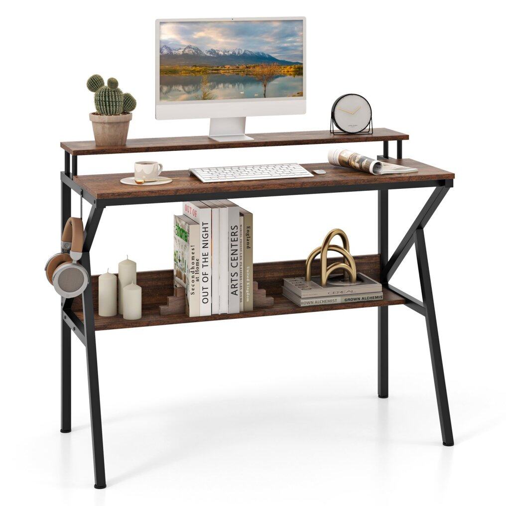 Upgrade Your Viewing Experience: The small computer desk is thoughtfully designed with a monitor shelf to elevate your screen to the perfect height. This feature promotes a healthier posture with less strain, giving you a more comfortable experience.