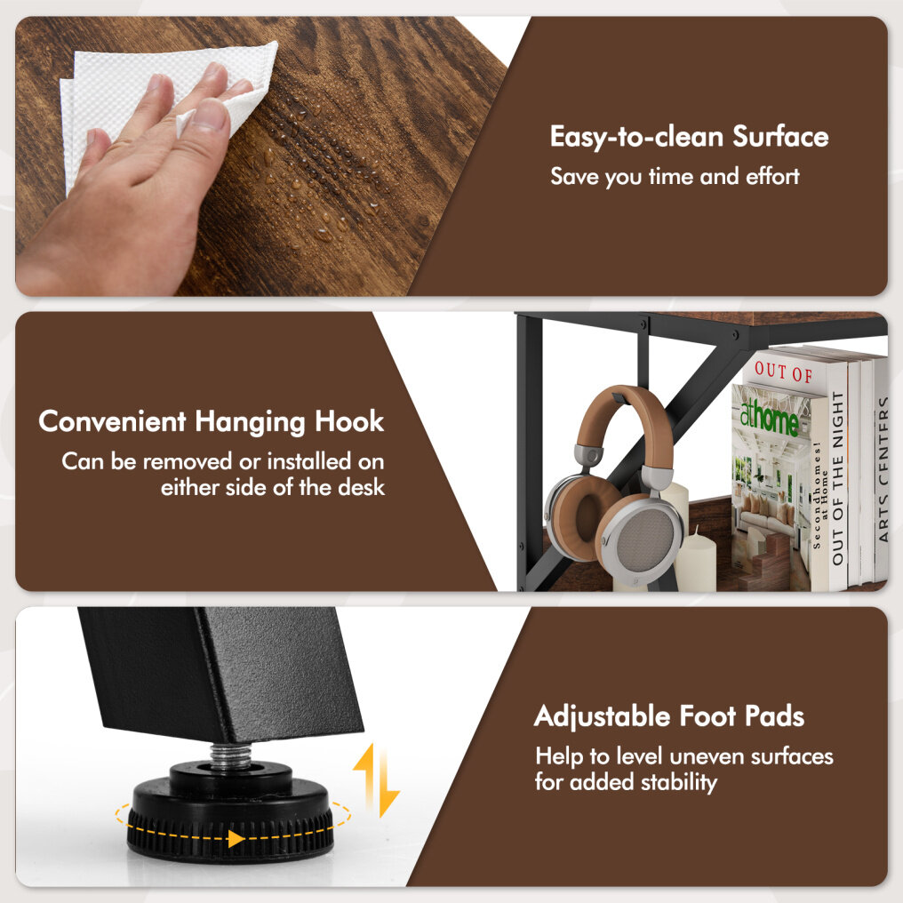 Maximize Your Storage Potential: Keep your workspace tidy and efficient with work table’s ample storage solutions. The bottom shelf is practical for housing books, documents, and more, while the side hook is the perfect spot for your bag or headphones. The hook can be removed or installed on the other side as needed.