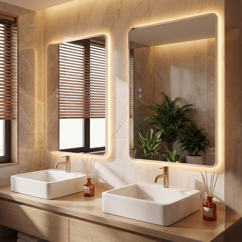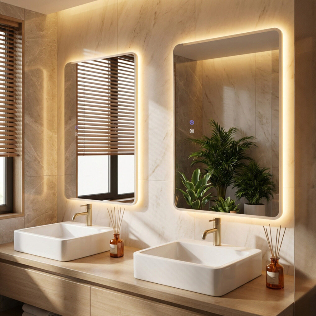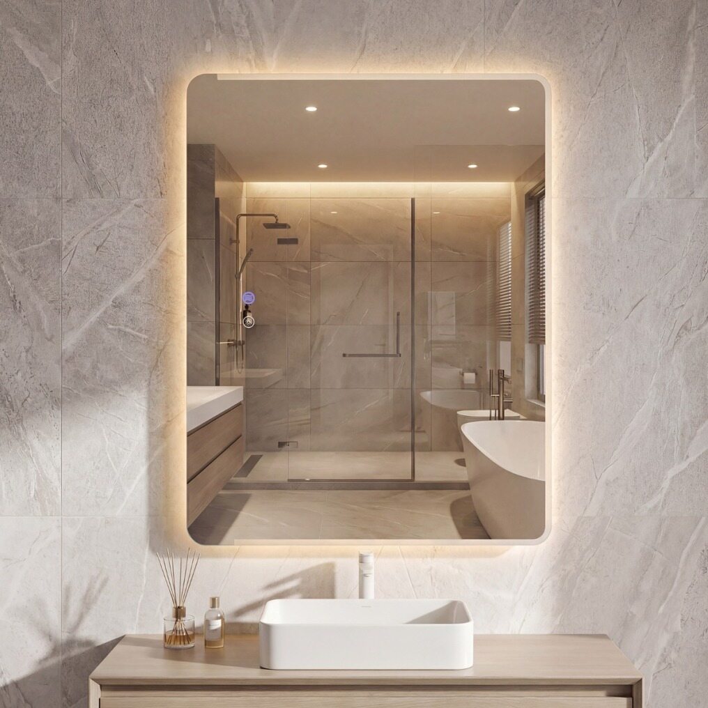 【Customizable Lighting Experience】This LED bathroom mirror features a stepless dimmer with 3 adjustable color temperatures: cool light, natural light, and warm light. Additionally, the memory function ensures your preferred settings are easily recalled each time you use it.