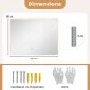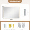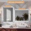 This wall mirror offers customizable lighting options with stepless dimming and three color temperature modes, accessible with a short press to change the color and a long press to adjust the brightness. The smart memory function retains your preferred brightness and color temperature settings. Made of high-strength tempered glass with an anti-shatter film, it won't shatter into pieces even if broken. Additionally, this illuminated vanity mirror features a one-touch defogging function. Installation is easy and flexible, allowing for vertical or horizontal mounting using the four metal hooks and included hardware.