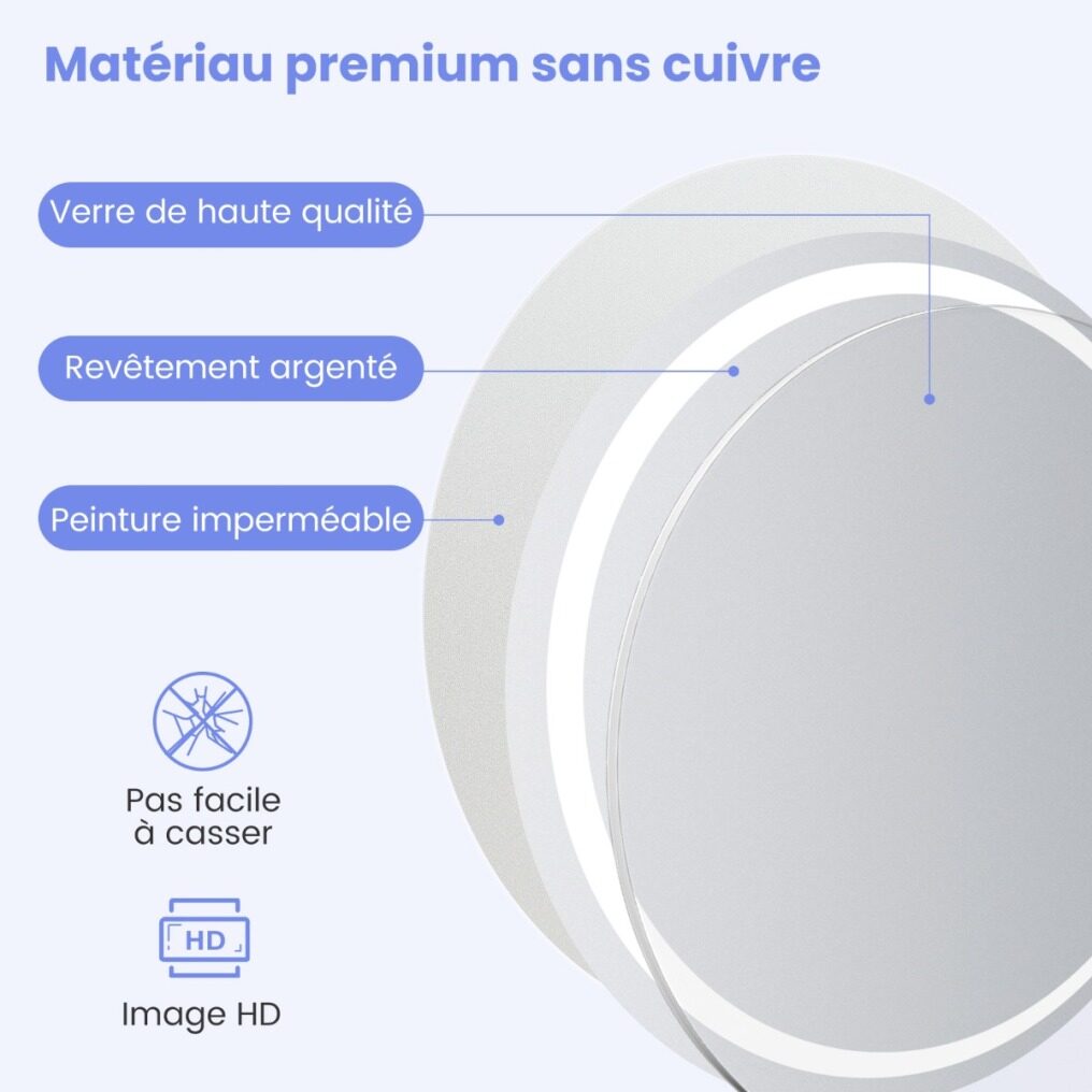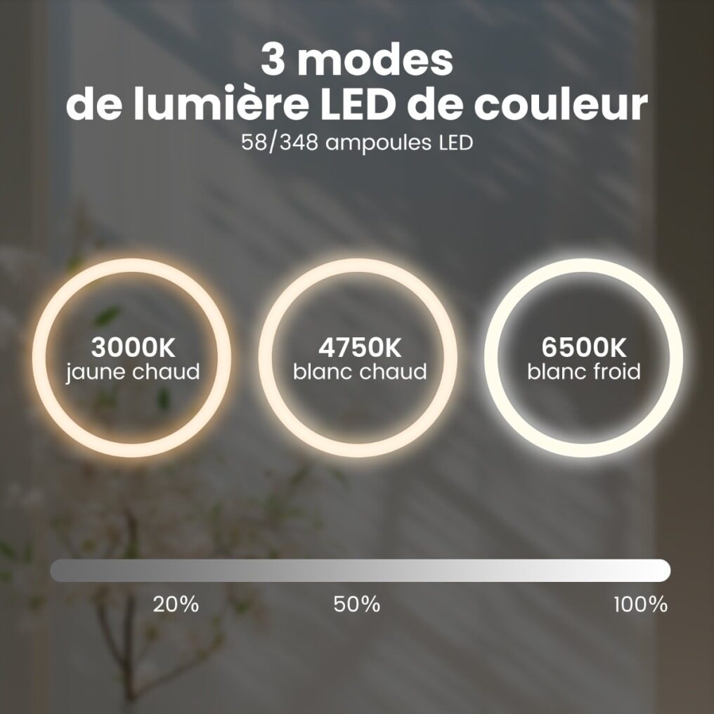 Our versatile LED mirror can transform any room into an elegant and functional space. Made of high-quality materials and featuring a copper-free coating and silver coating, this wall mirror provides dynamic and crystal-clear images. Plus, our vanity mirror is equipped with a convenient anti-fog function so you can see yourself more clearly. In addition to its anti-fog function, our LED mirror offers three colored LED light modes for you to choose from for a customized lighting experience. Specifically, with 348/432 LED bulbs, you can choose between 3000K warm yellow light, 4000K warm white light, and 6500K cool white light and adjust the brightness accordingly. Conveniently, our LED mirror also has a built-in memory function that automatically recalls your previous lighting and brightness preferences. And its sleek design and high-quality construction make it the perfect choice for different rooms in your home.