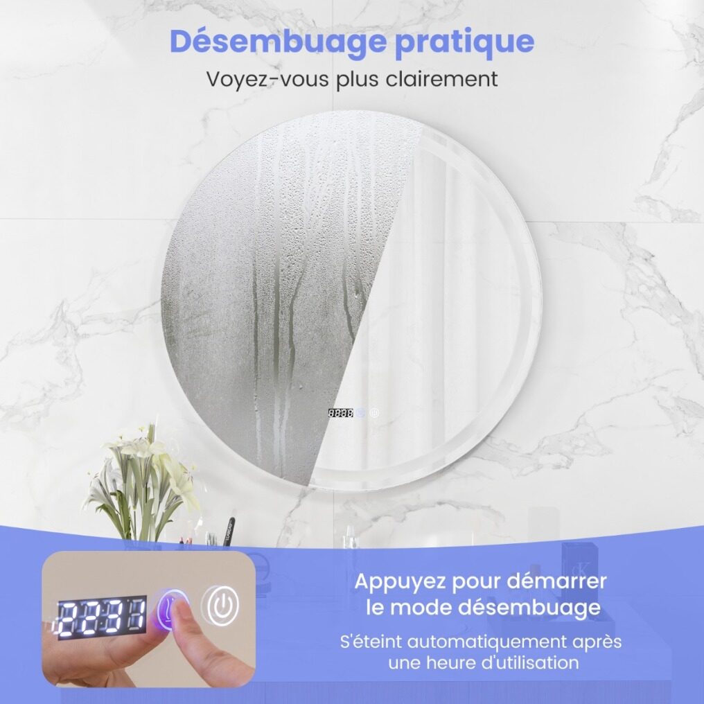 The LED mirror has thoughtful details such as time display or automatic switch-off