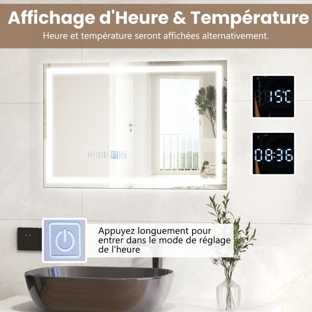 Anti-Fog Function: Equipped with an anti-fog function, this mirror brings you quick defogging and ensures clear vision even in steamy bathroom conditions. It always delivers clear images so you can enjoy a clear reflection without constantly wiping off condensation.