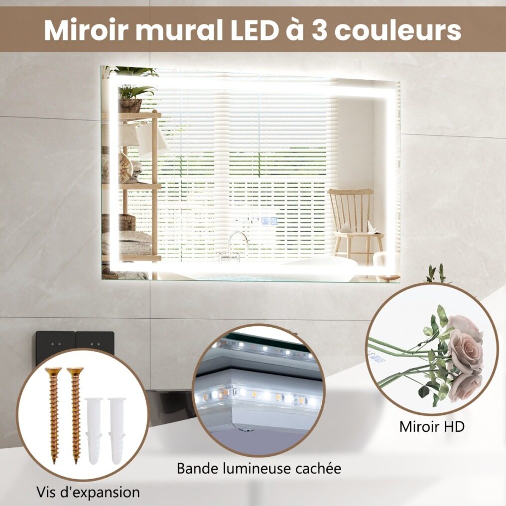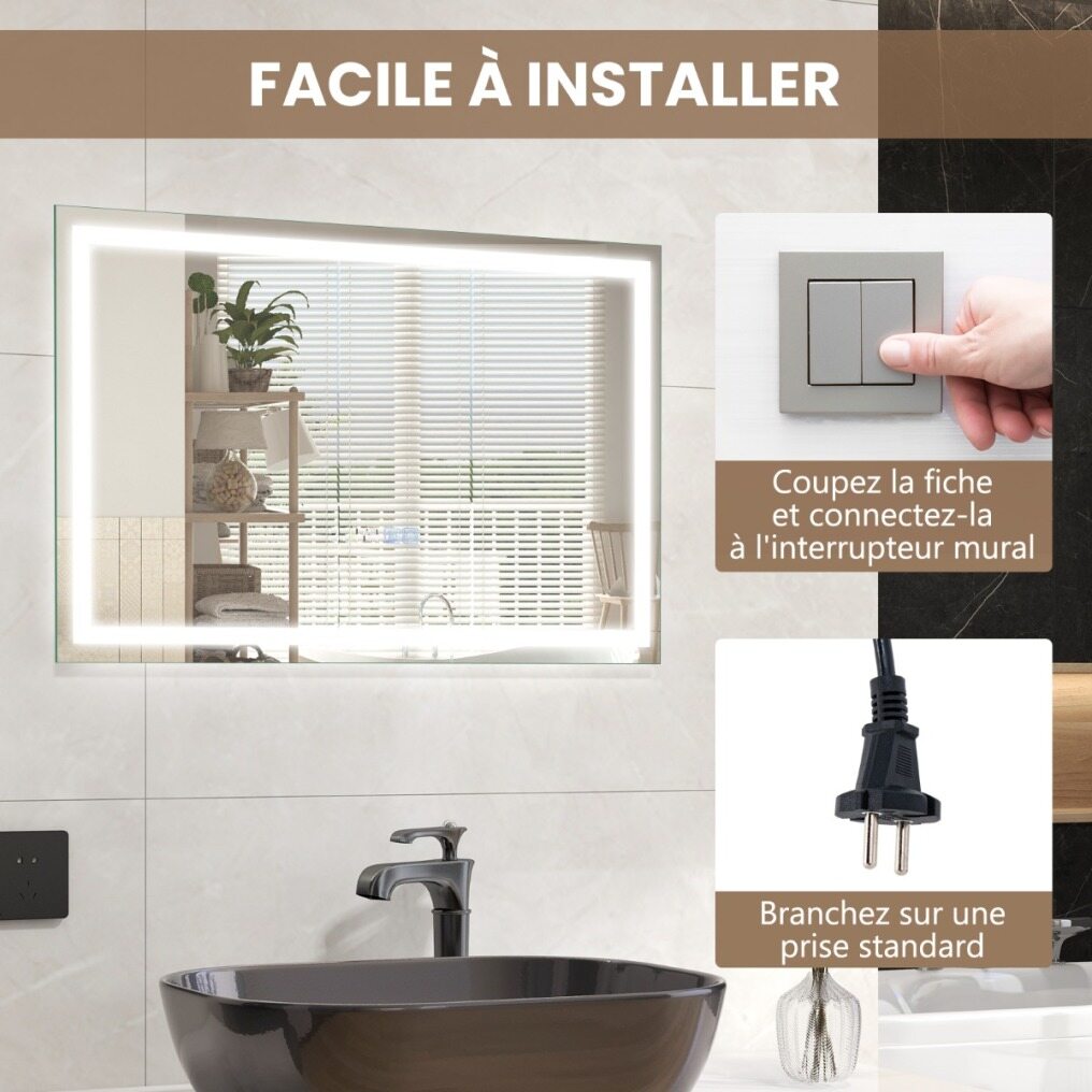Easy installation: The mirror is equipped with 2 hanging hooks and the package includes necessary accessories, making wall mounting easy. Also, this mirror is available in 2 connection options: choose between plug-in (power cord length 90 cm) or hard-wired (using the wall switch) installation to suit your preferences and electrical setup.