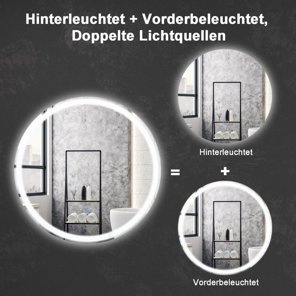 Backlit + Front Lit, Dual Light Source: This lighted mirror features a dual lighting system, with both front and backlit settings. This feature allows the light to come not only from the front for clarity, but also softly from the back, creating a pleasant atmosphere.