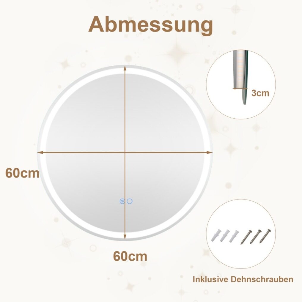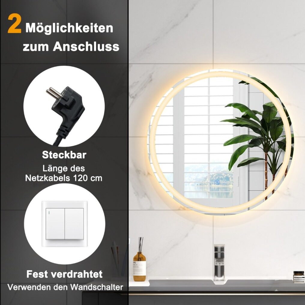 Flexible Installation Options: The touch switch mirror comes with pre-assembled wall mounting hooks and expansion screws. It comes in 2 connection options: choose between plug-in installation (120cm power cord length) or hardwired (using wall switch).