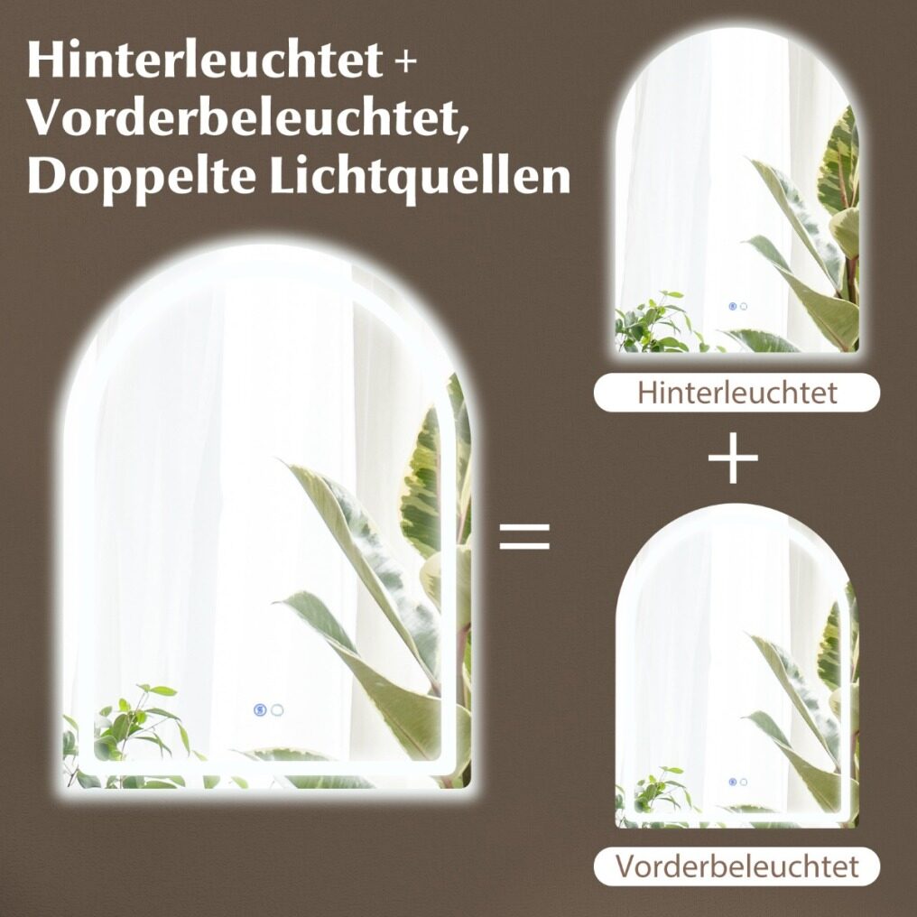 Backlit + Front Lit, Dual Light Source: This lighted mirror features a dual lighting system, featuring both front and backlit settings. This feature allows the light to come not only from the front for clarity, but also softly from behind, creating a pleasant atmosphere.