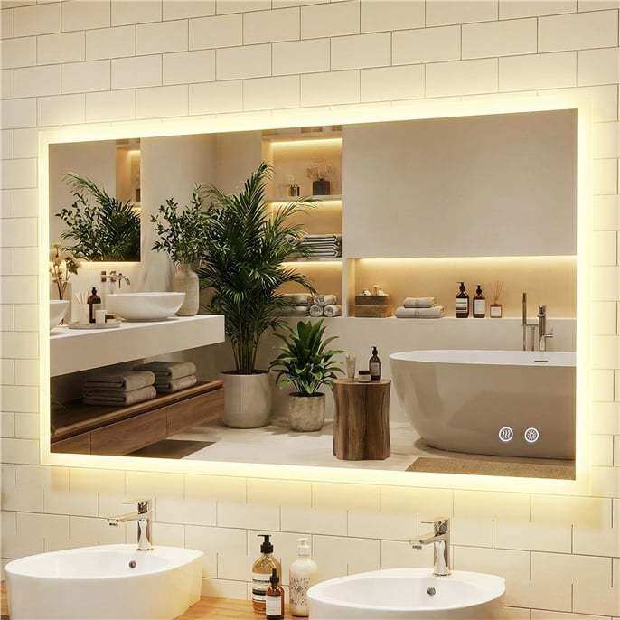3 color options: This LED mirror offers stepless dimming from 10% to 100% in 3 light colors: cool 6500K, natural 4750K and warm 3000K. Both brightness and color are adjustable via touch control, while the intelligent memory function saves your favorite light settings.