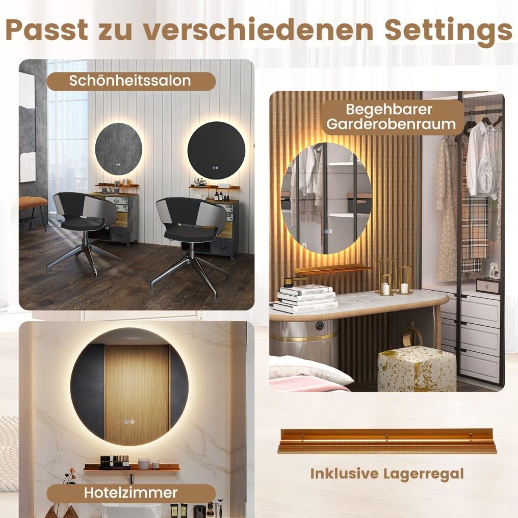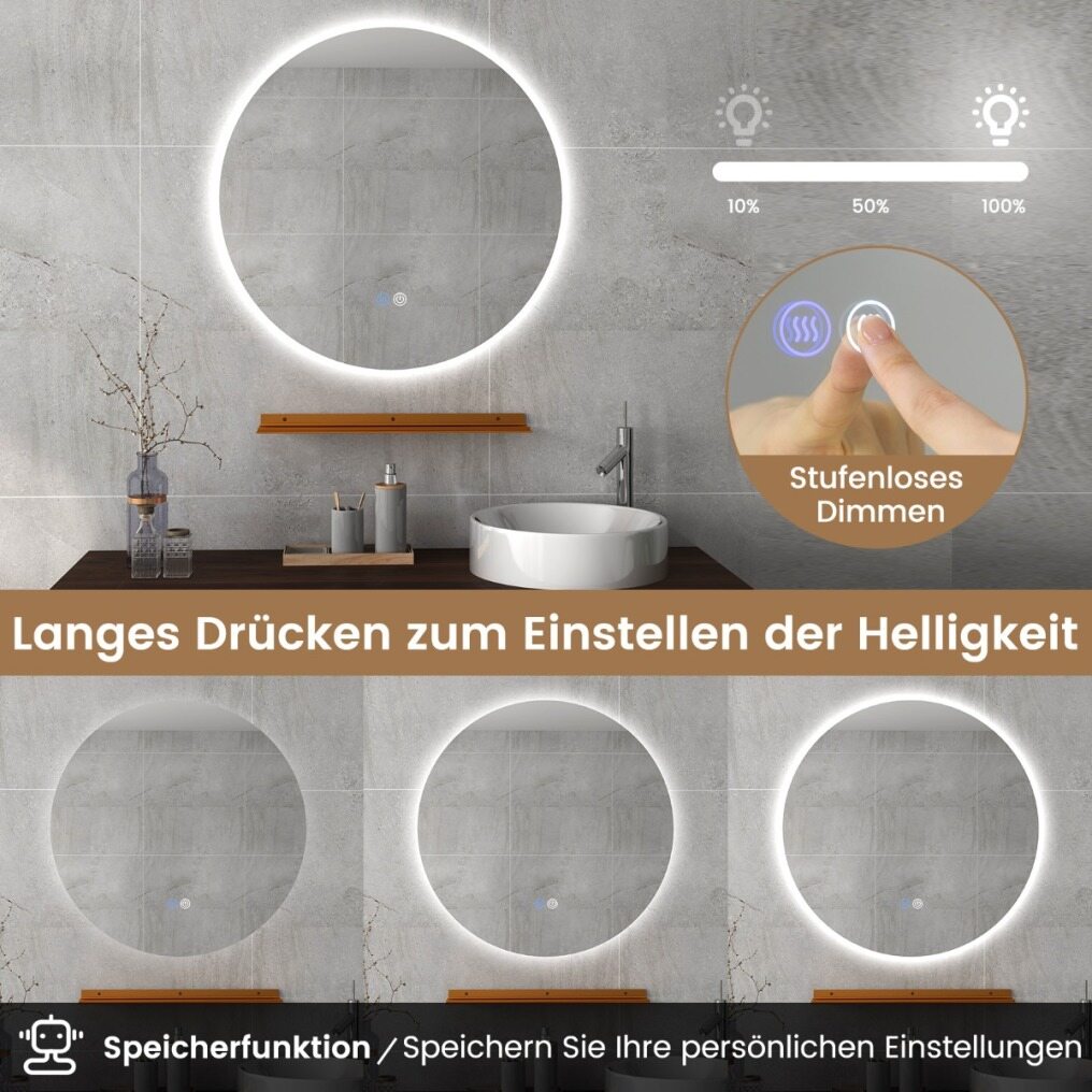 Memory Function: Forget about having to adjust the lights every time before using them. The round LED mirror automatically restores the last brightness and color settings used, quickly restoring the atmosphere you prefer.