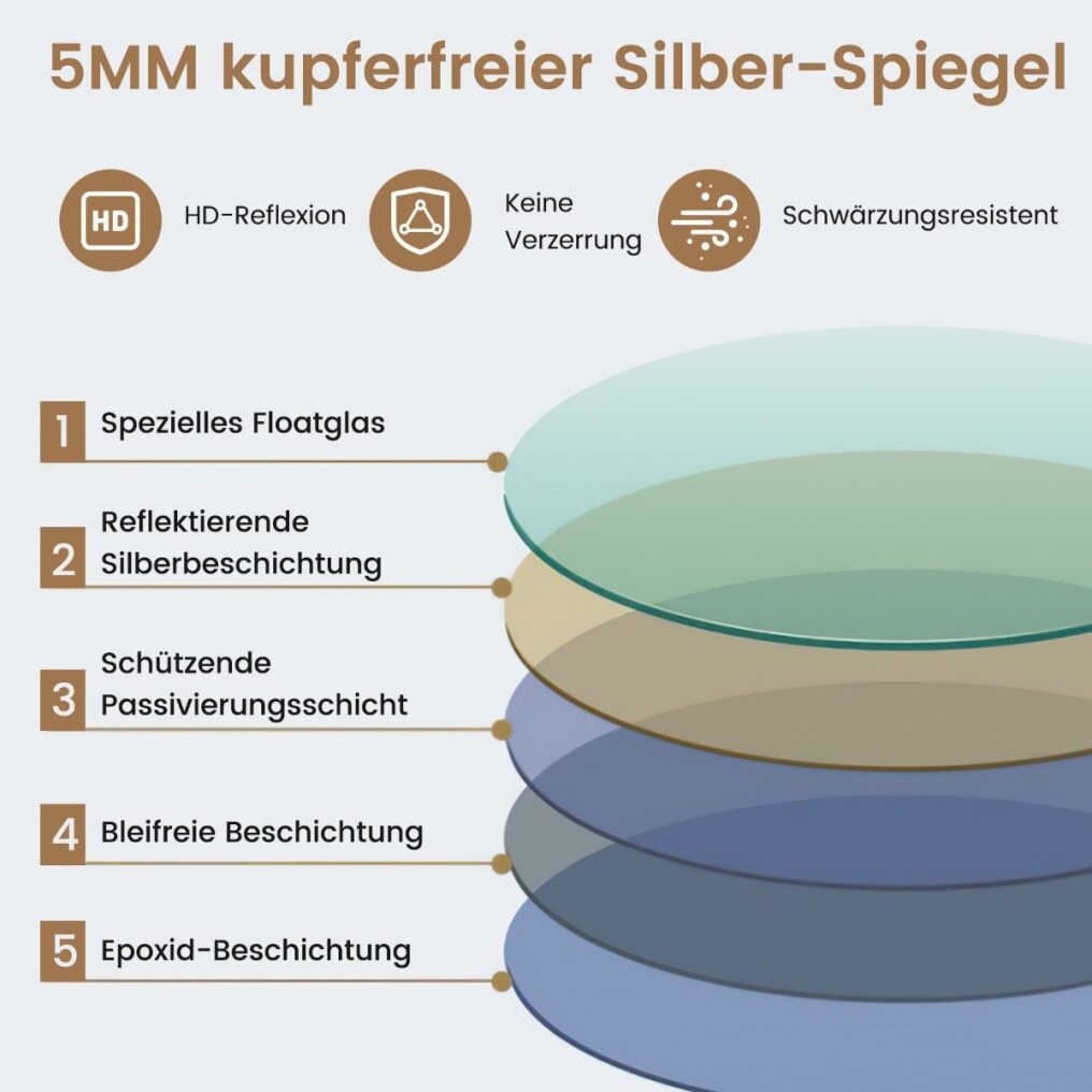 Crafted from 5mm copper-free silver mirror for sturdy construction