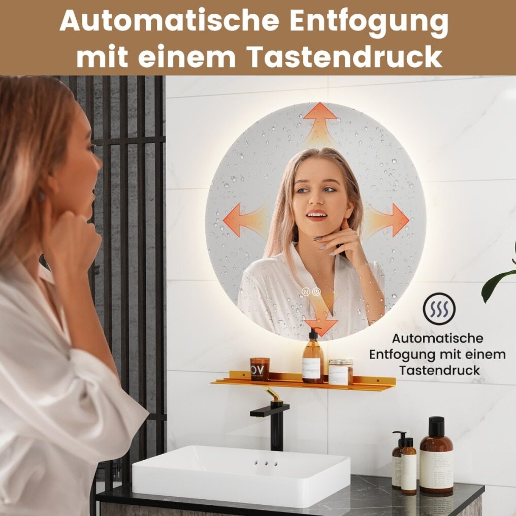Auto-Defrost: No more fogged mirrors and annoying cleaning. Activate the auto-defrost function with one touch, and the vanity mirror stays clear during showers. For your peace of mind, the defroster automatically turns off after 1 hour.