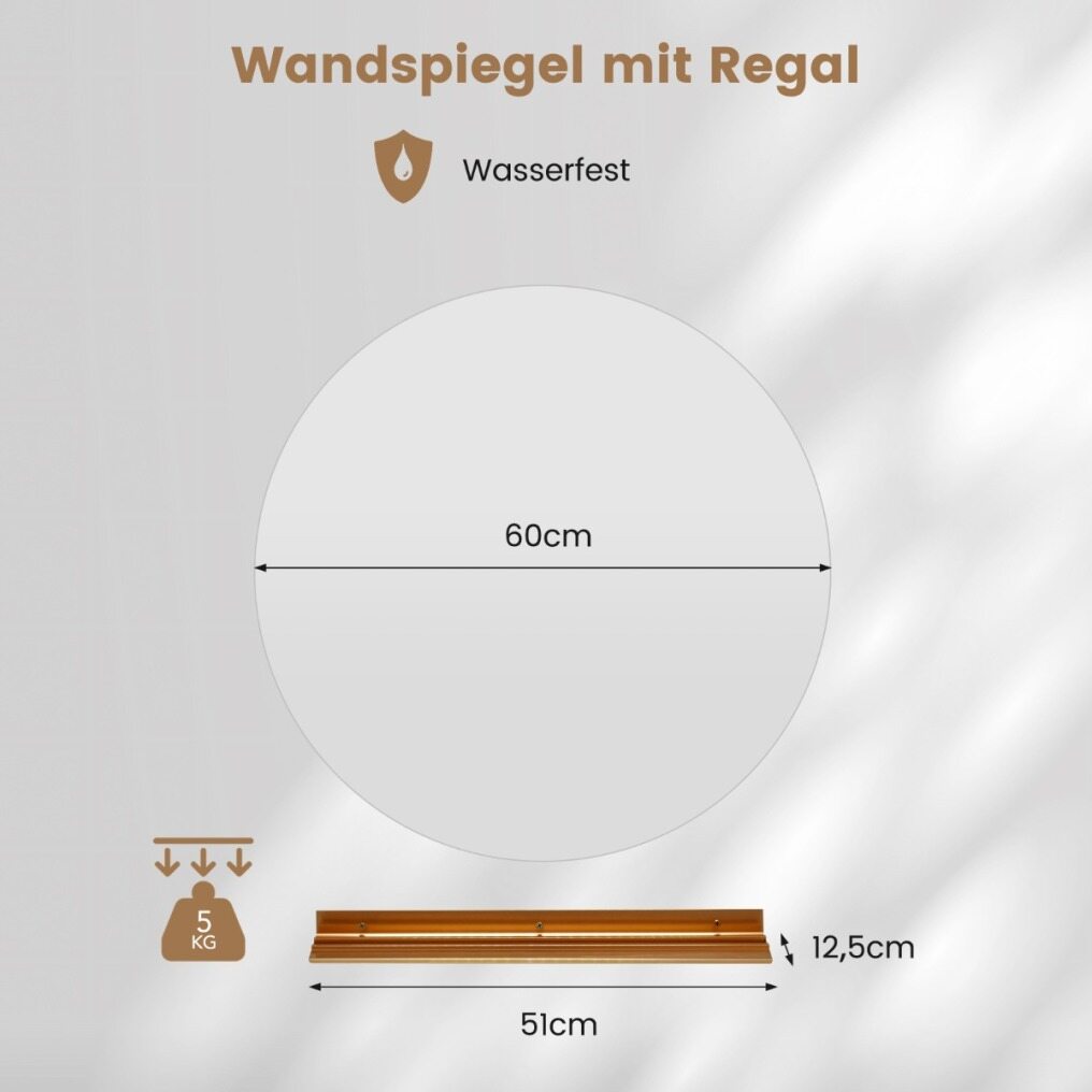 Shelf Included: For added convenience, a metal shelf is included. The sturdy shelf holds up to 5kg when mounted properly, providing a convenient storage solution for toothbrush cups, makeup, perfume or decorations.