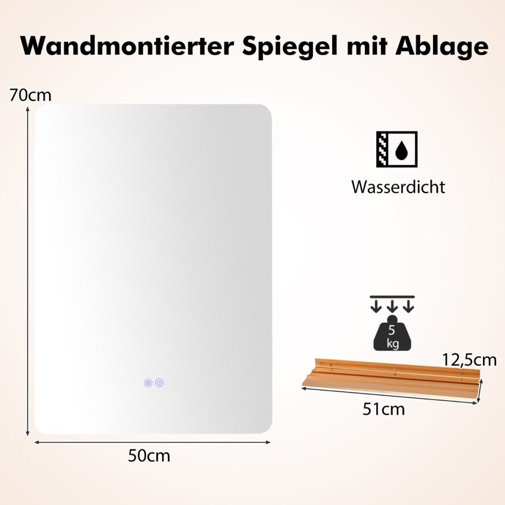 Memory & Touch Control: With its integrated touch switches, the practical wall mirror is convenient and safe to use. The intelligent memory function retains your favorite colors and light levels, simplifying your daily routine by automatically restoring the last used settings.