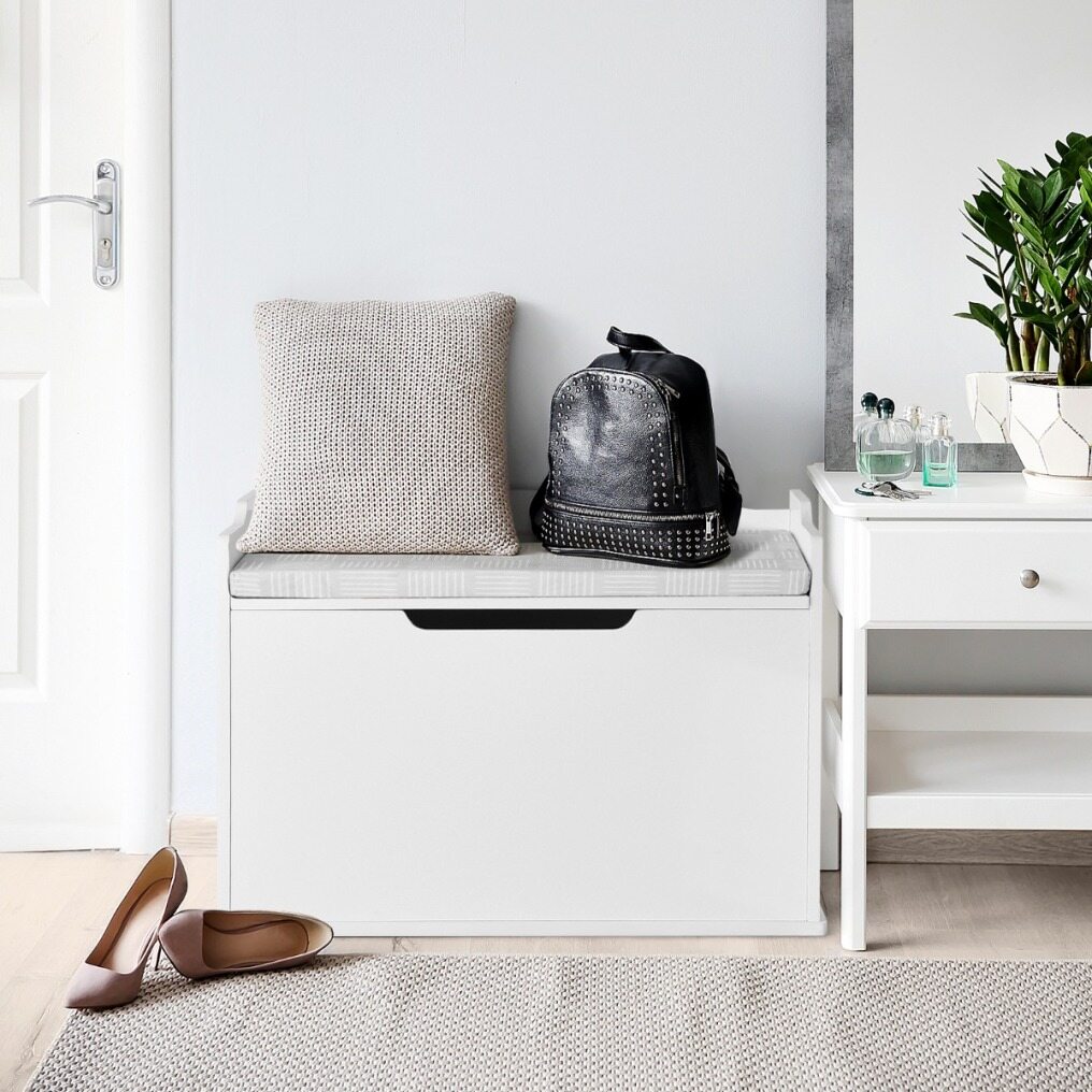 Slow closing lid instantly hides your piles of stuff away, transforming a cluttered room into a neat and orderly living heaven. Also, this storage cabinet can not only be used as a locker, but also as a small bench for the children. The kids can read books here and nurture their minds and hearts during the process of cleaning and organizing. The elegant appearance effortlessly coordinates with your existing home decor and is suitable for entryways, bedrooms, playrooms, etc.