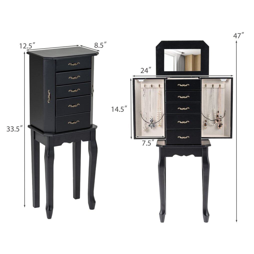 ● Ergonomic Design: The height of the jewelry cabinet is ergonomics. It is close to the height of people sitting on the chair and you do not need to bend your knees or stand up to take out your jewelry. You could just use it conveniently while you sitting on the chair or stool.
