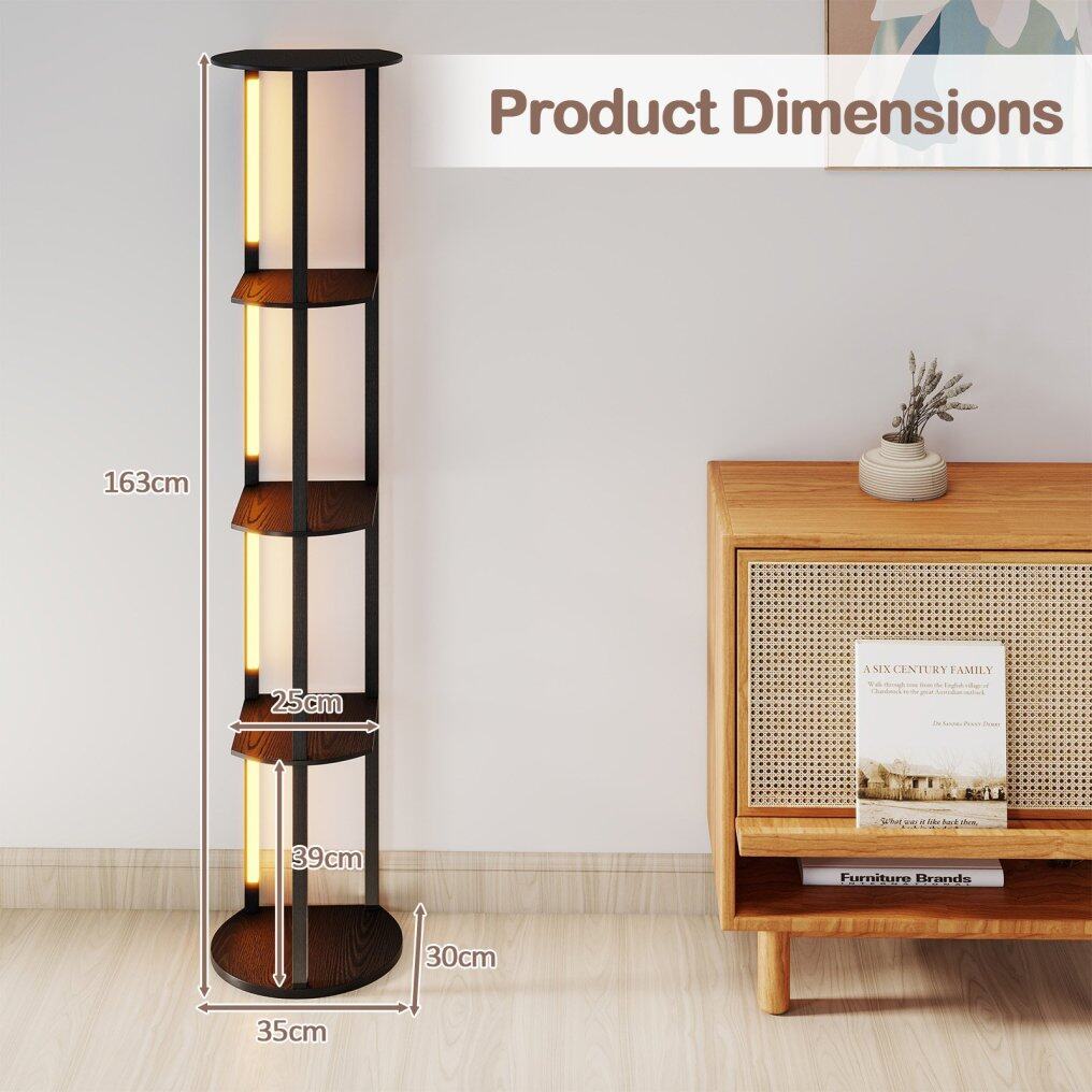 This unique piece not only illuminates your space with its four LED bars, but also offers versatile storage solutions with its four-tiered shelves. Ideal for displaying books, plants, or decorative items, the modern shelf lamp enhances the beauty and functionality of any room. With three adjustable brightness levels, controlled by a convenient foot switch, and rotatable LED strips for personalized light direction, this lamp meets all your lighting needs. Furthermore, the elegant, wood-like finish makes it a stylish addition to any living room, bedroom, or office, effortlessly blending practicality with modern aesthetics.